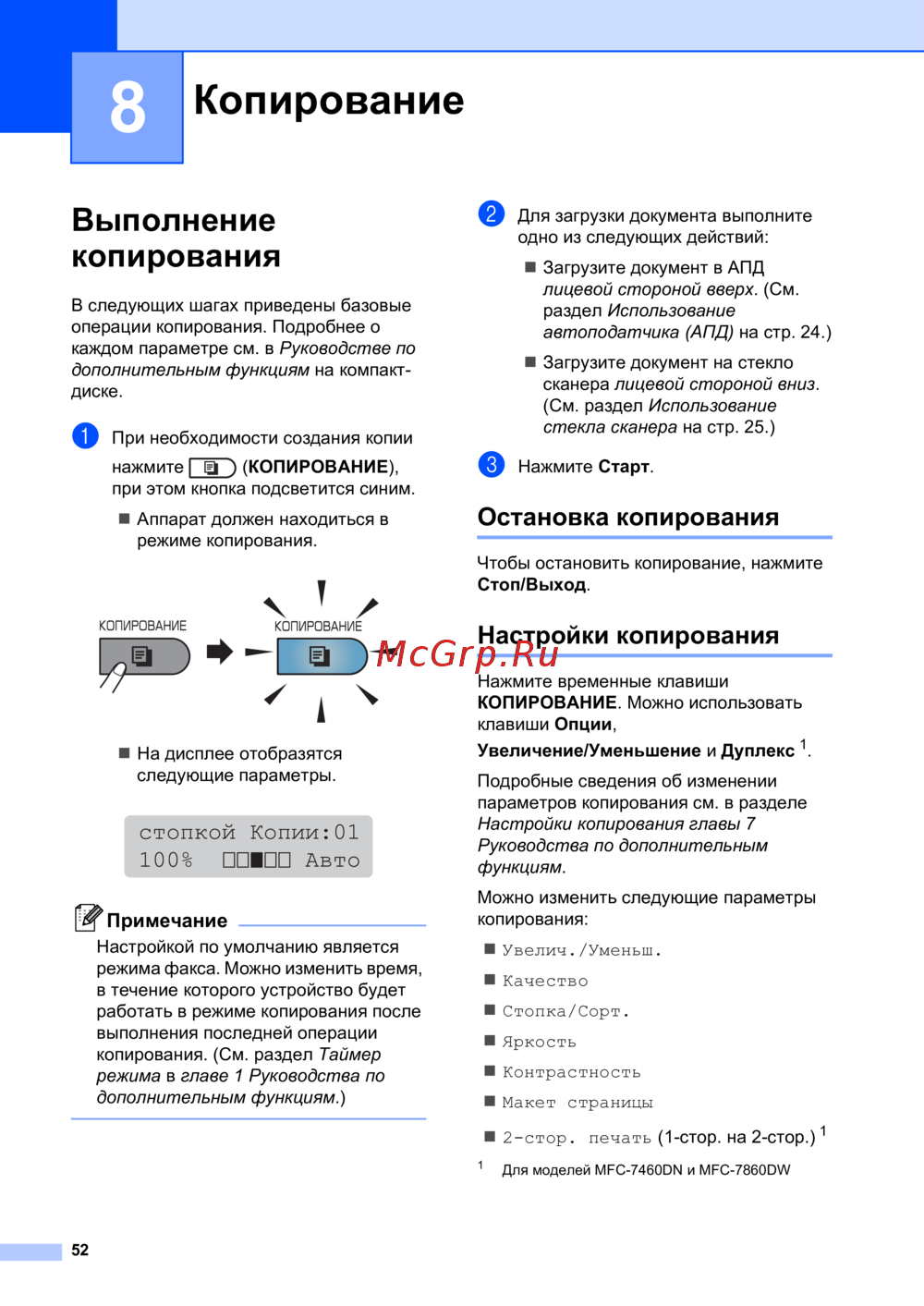 Brother MFC-7860DW — основные операции копирования: пошаговое руководство [62/180]