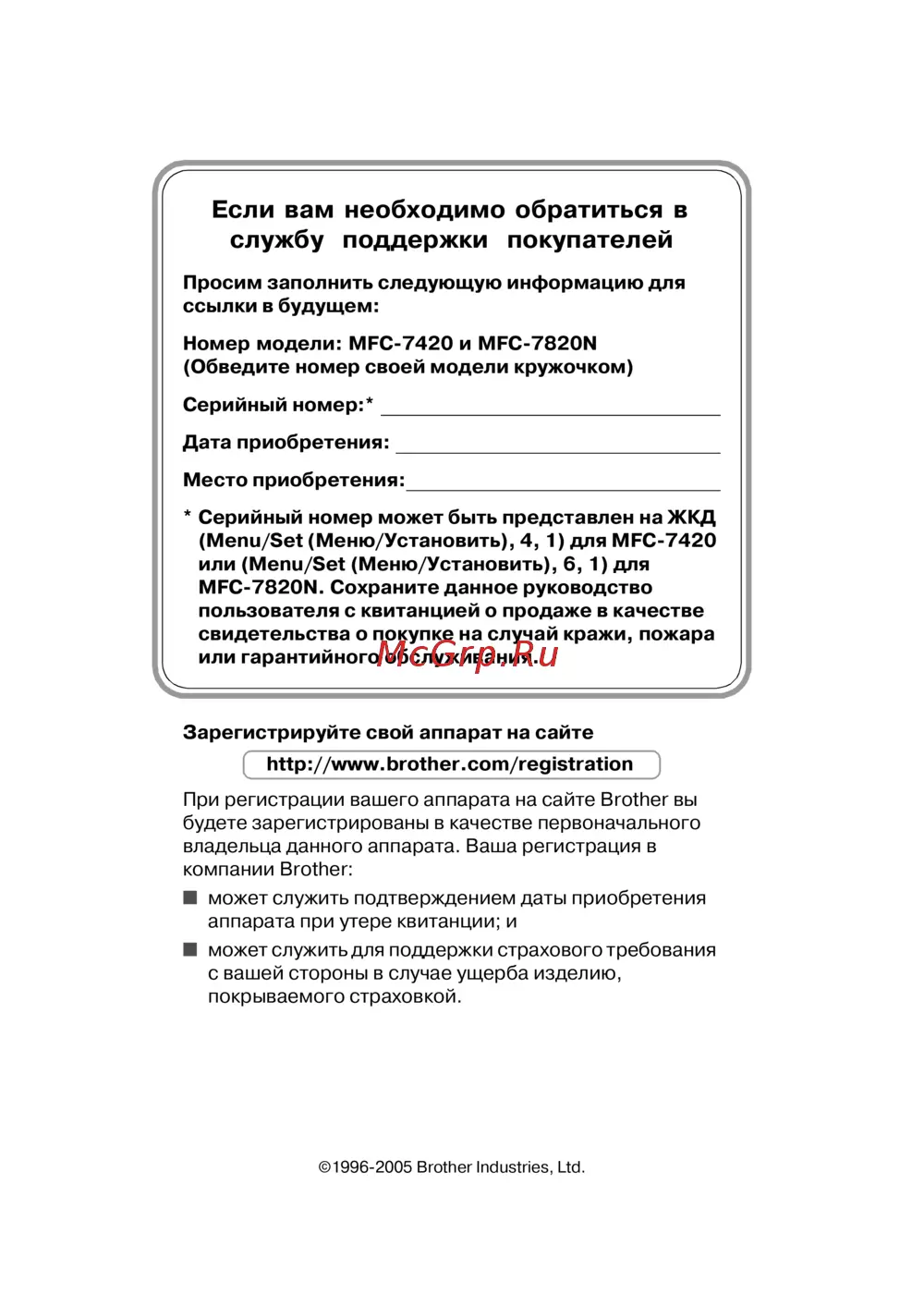 Brother MFC 7420 — как обратиться в службу поддержки покупателей: полезная информация [2/149]