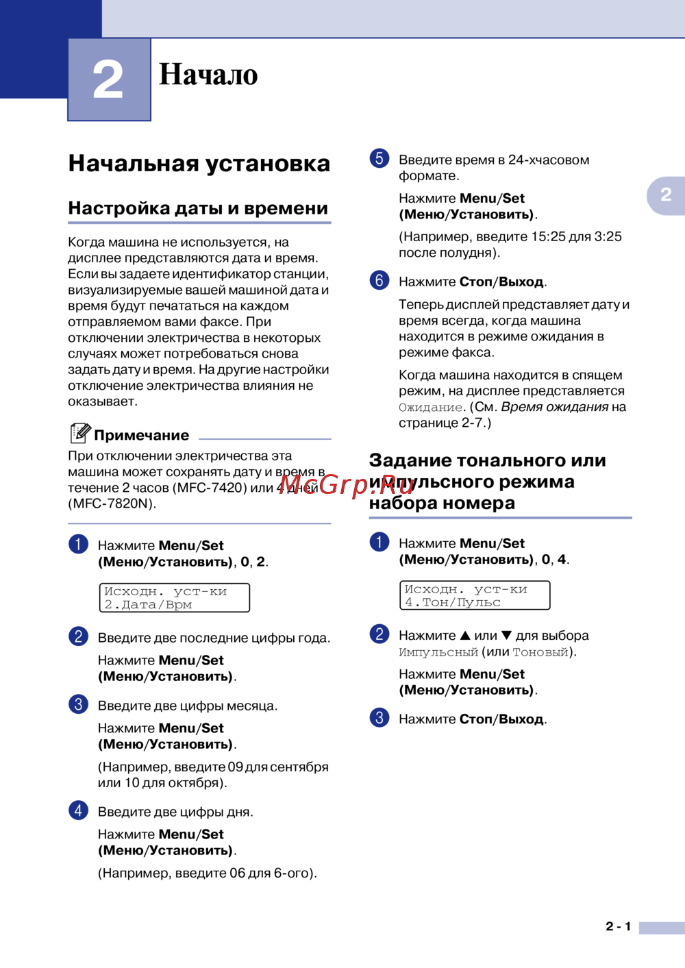 Brother MFC 7420 — настройка даты и времени на устройстве: пошаговое руководство [28/149]