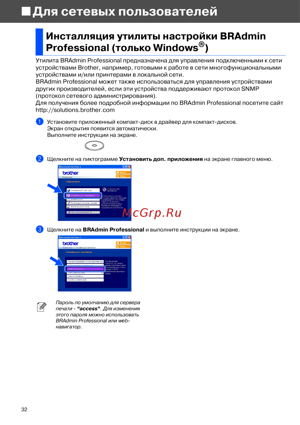 - Инсталляция утилиты настройки bradmin professional только windows p.34