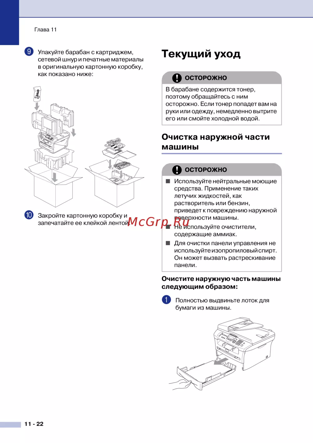 Brother MFC 7820N — правильная упаковка и уход за печатающим устройством [105/149]