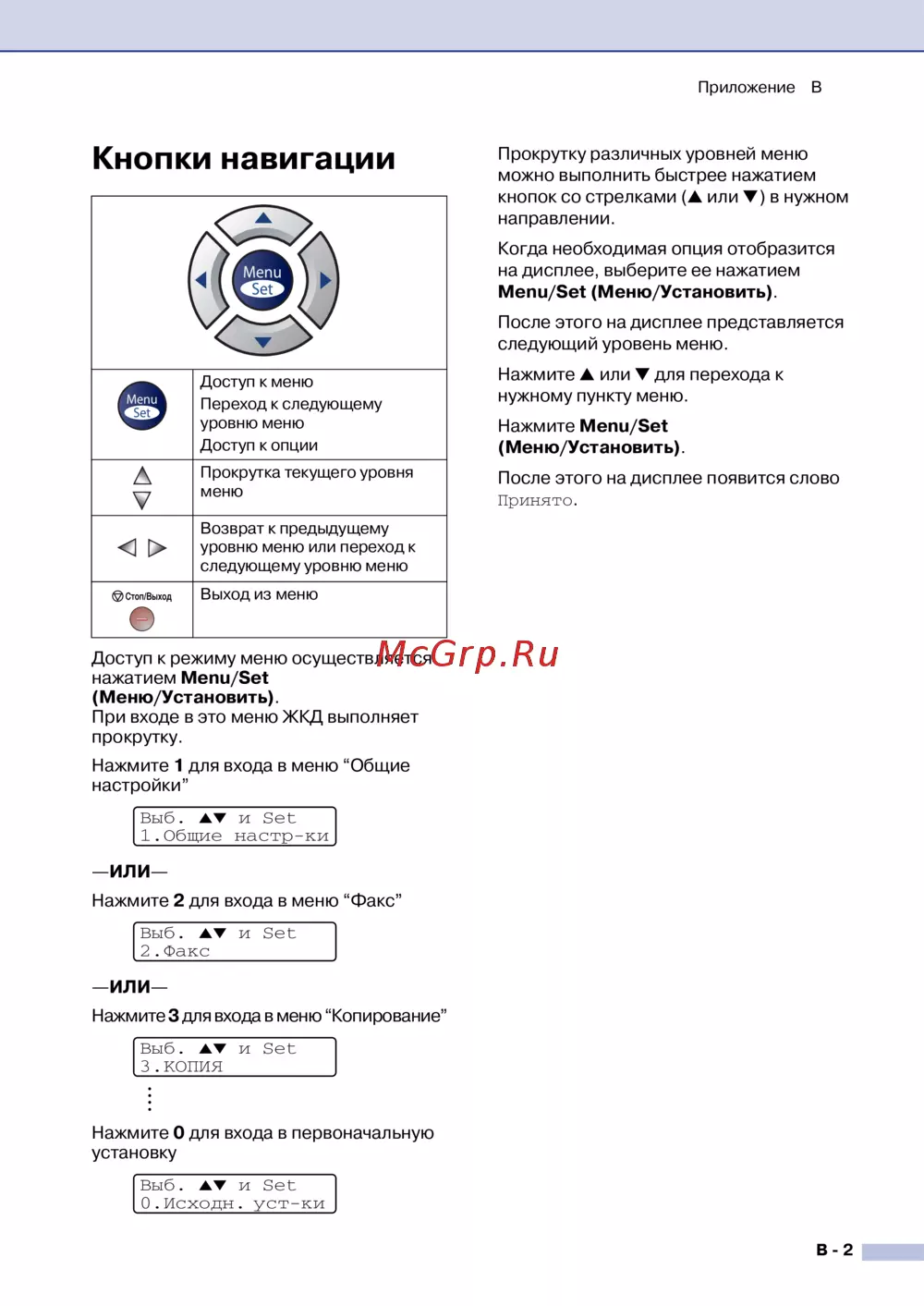 Узнайте, как легко управлять меню вашего устройства с помощью простых кнопок навигации. Доступ к общим настройкам, факсу и копированию за считанные секунды.