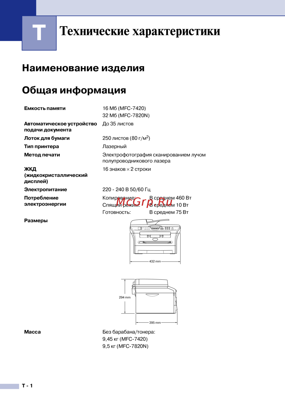 - Руководство пользователя mfc 7420 mfc 7820n p.1