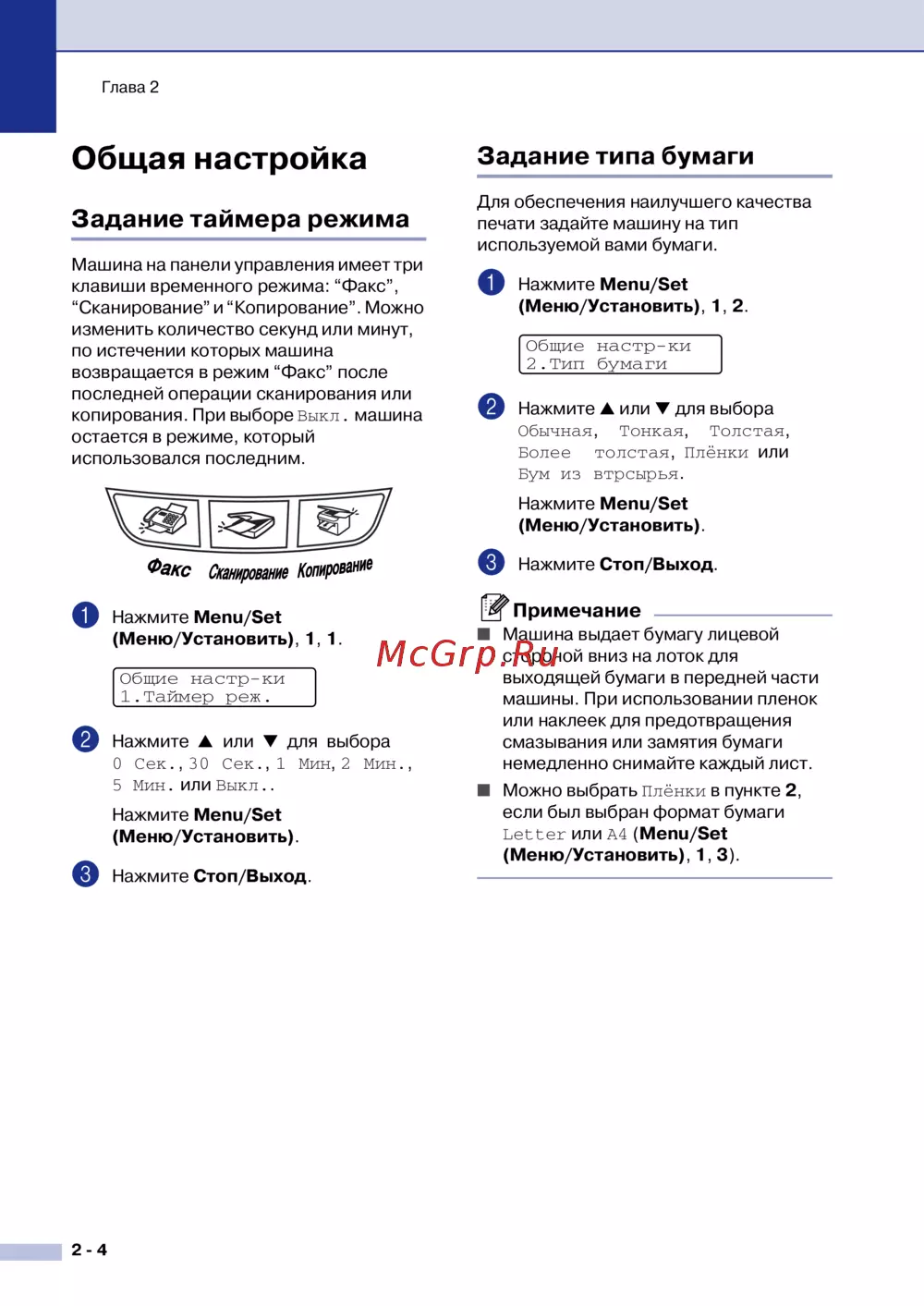 Brother MFC 7820N — настройка таймера и типа бумаги для печатающих устройств [31/149]