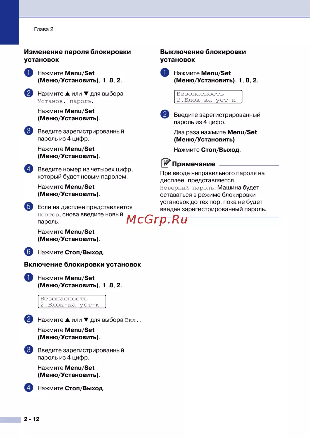 Brother MFC 7820N — инструкция по изменению пароля блокировки установок устройства [39/149]
