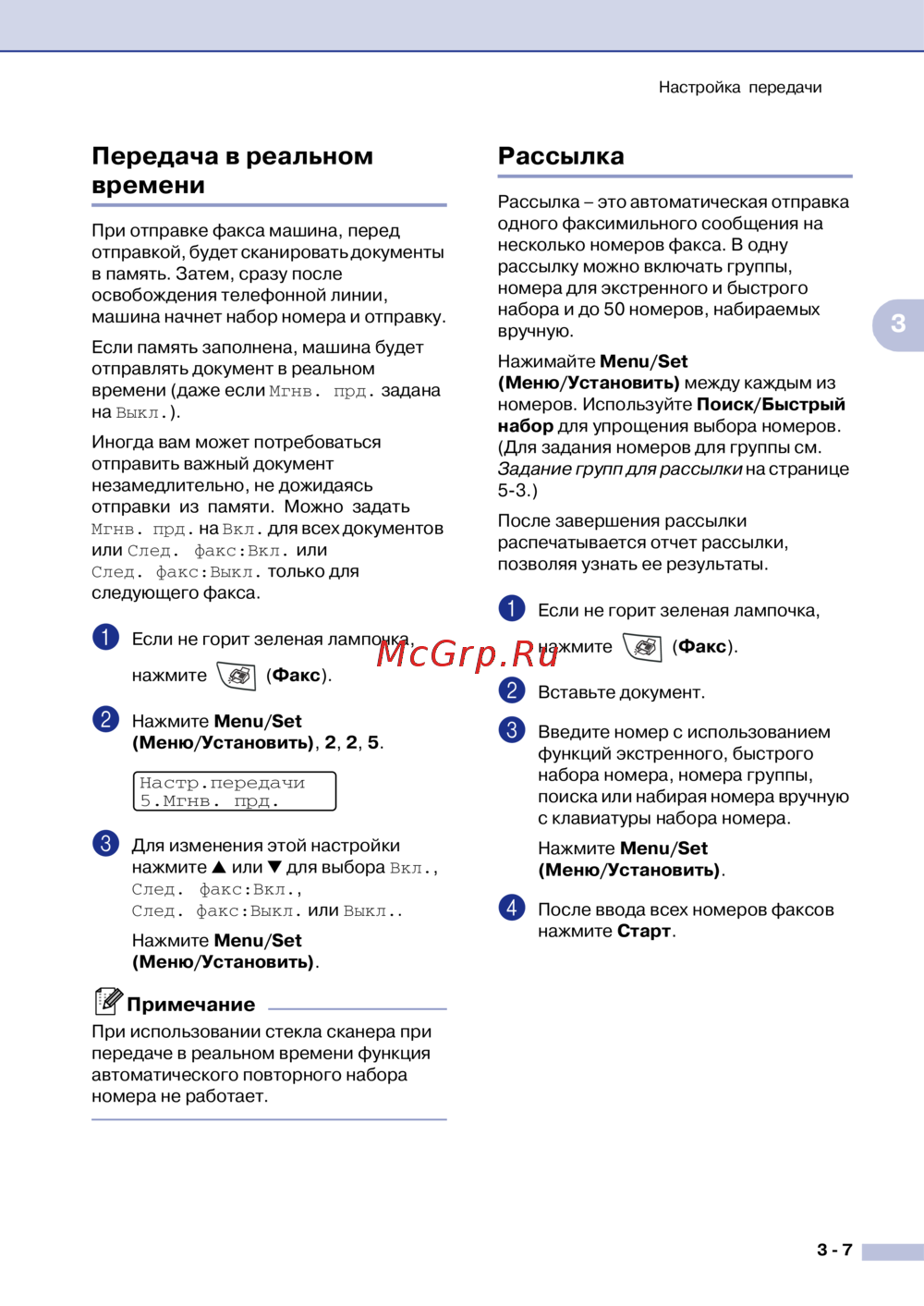 Brother MFC 7820N — настройка передачи факсов в реальном времени и рассылка [46/149]