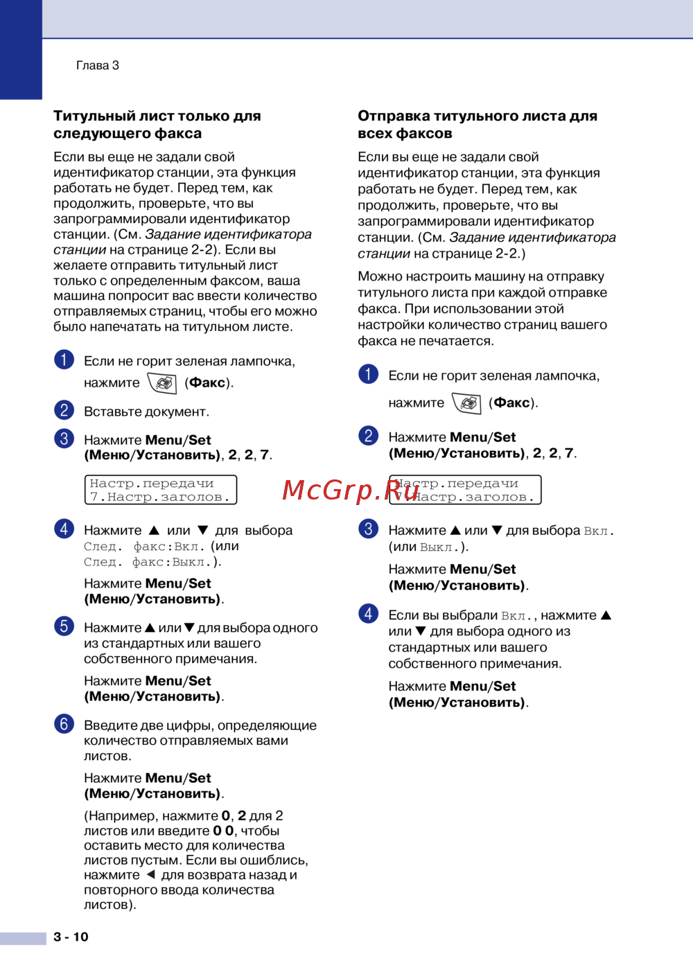 Brother MFC 7820N — настройка отправки титульного листа для факсов [49/149]