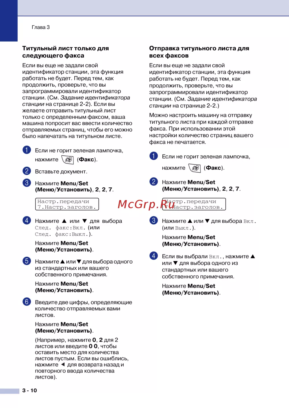След. факс:Выкл.).