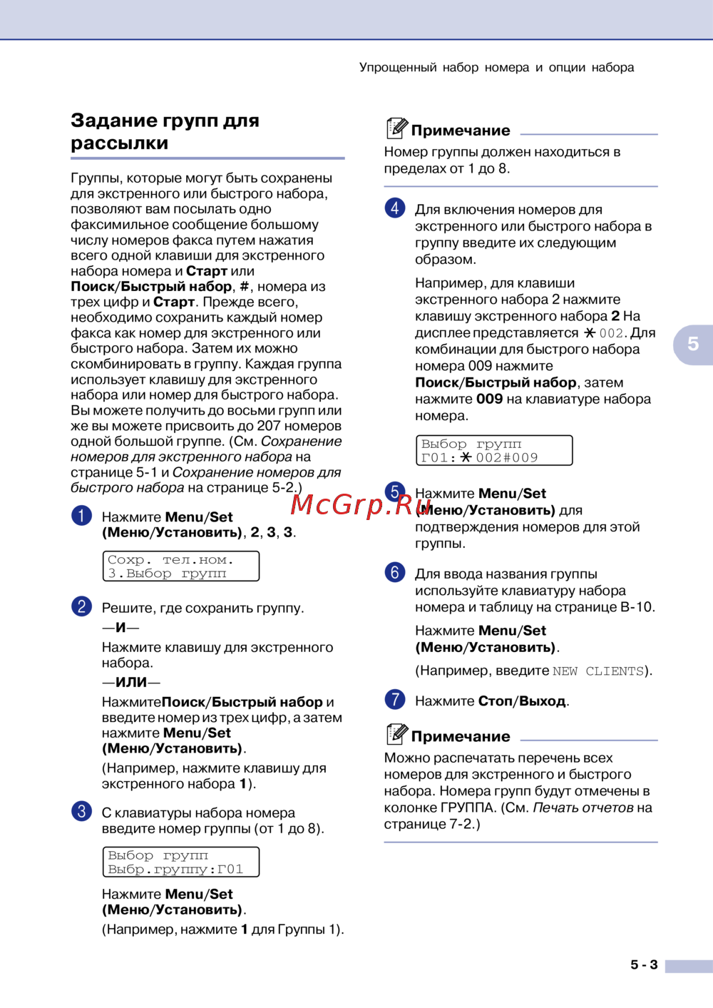 Узнайте, как создать группы для экстренного и быстрого набора факсов. Настройте до 8 групп и до 207 номеров для удобной рассылки сообщений.
