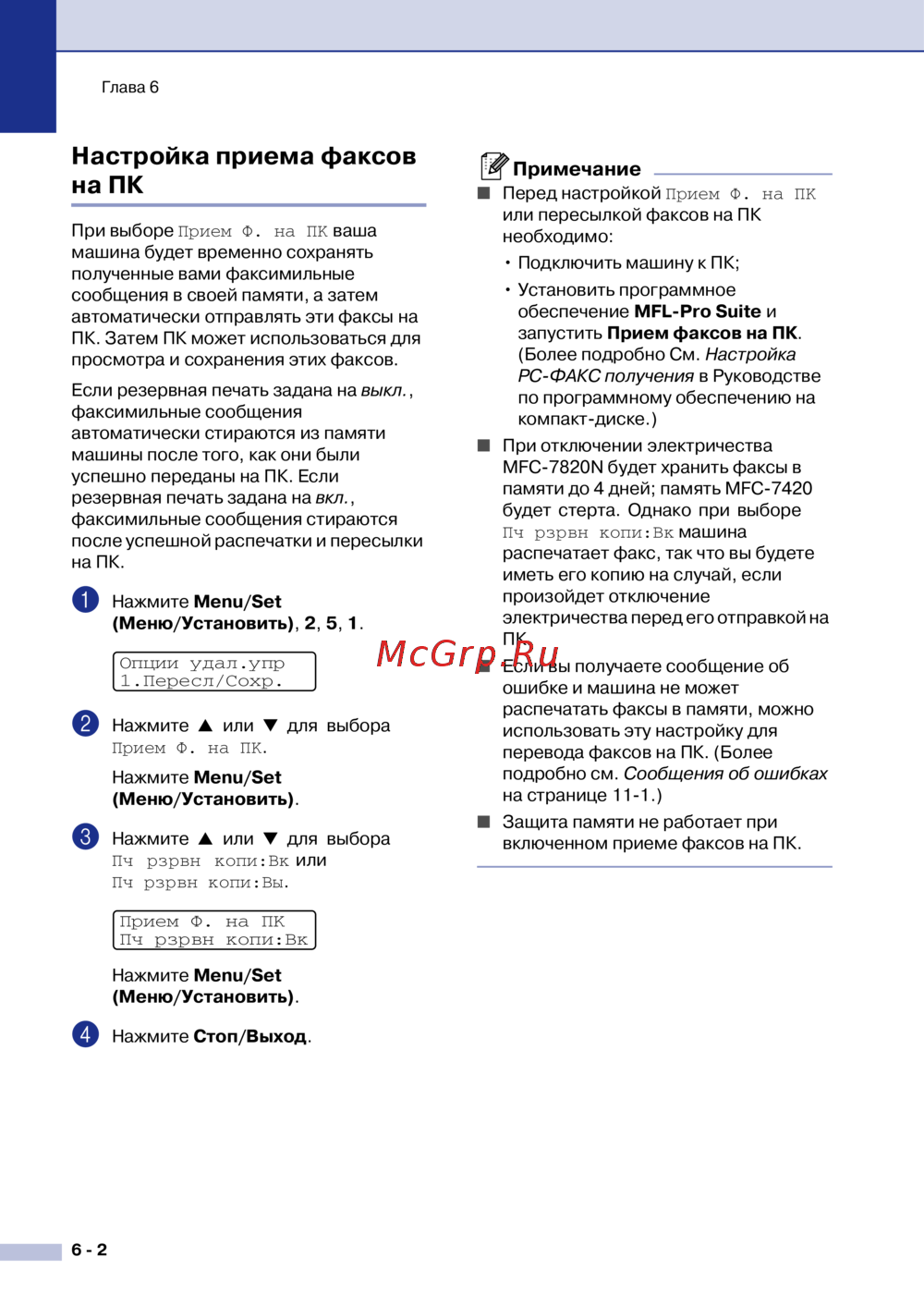 Brother MFC 7820N — настройка приема факсов на ПК: пошаговая инструкция [65/149]