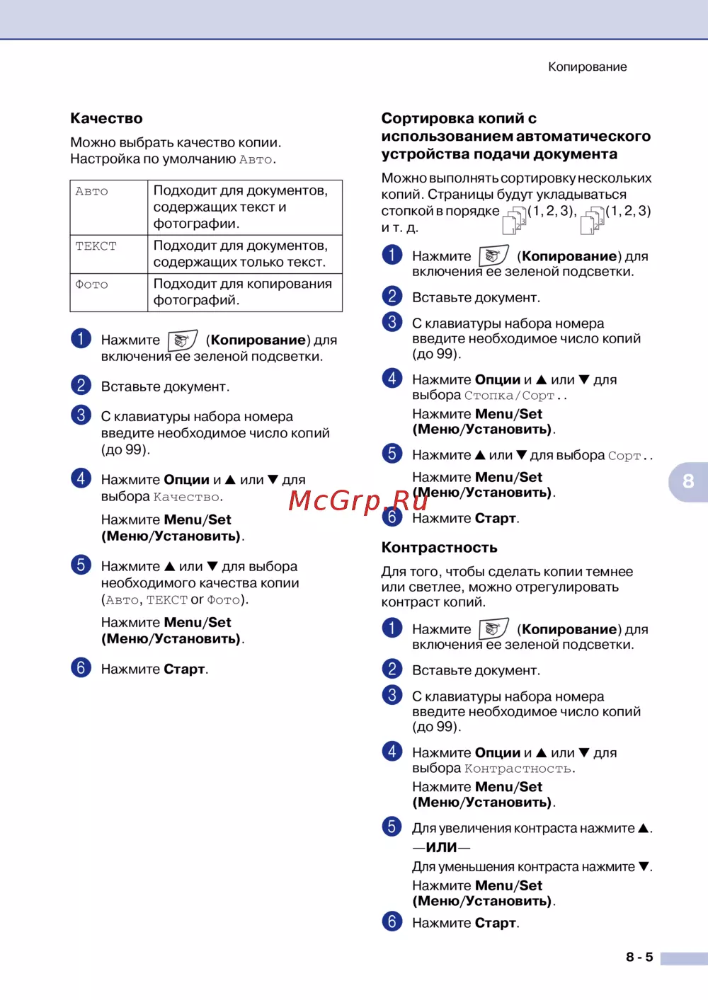 Brother MFC 7820N — как настроить качество и сортировку копий документов [76/149]