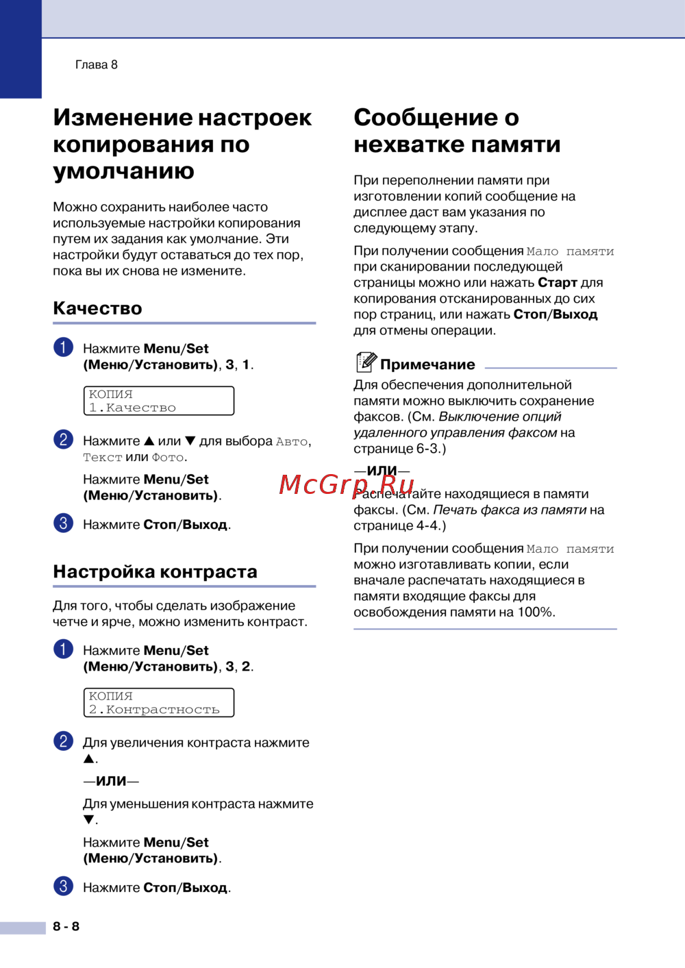 Brother MFC 7820N — настройка копирования: качество и контраст по умолчанию [79/149]
