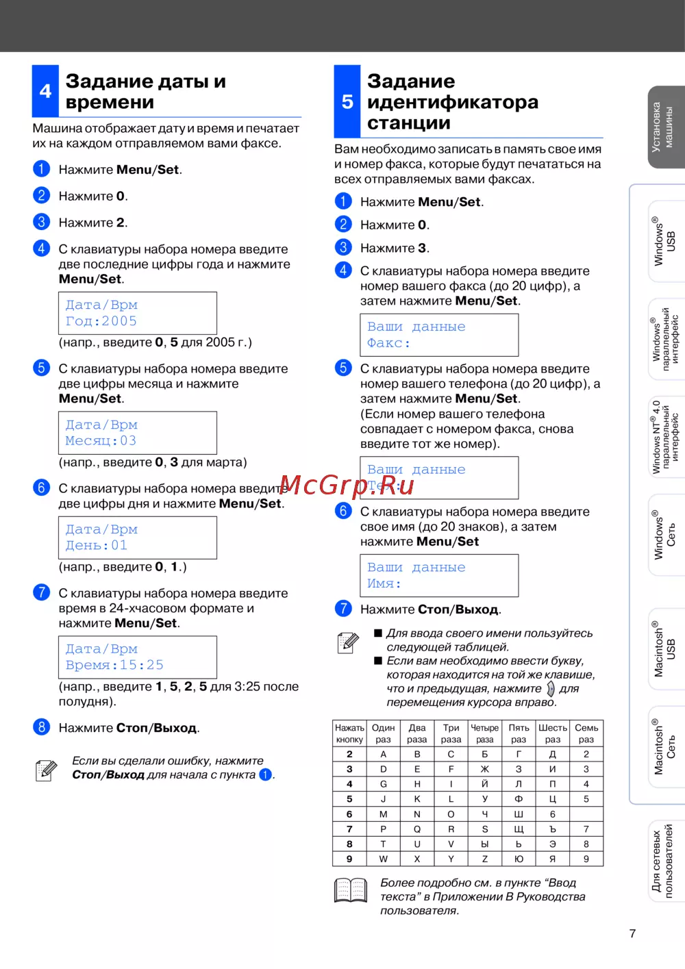 Brother MFC 7820N — инструкция по настройке факса: установка даты и времени [9/38]