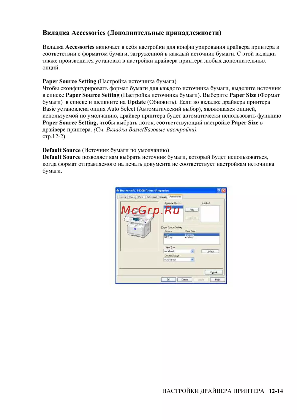 Brother MFC-8420D — настройки драйвера принтера: конфигурация источников бумаги [194/427]