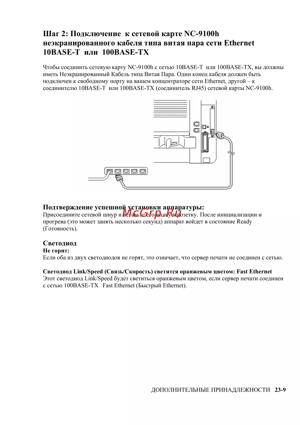 - Шаг 2 подключение к сетевой карте nc 9100h неэкранированного кабеля типа витая пара сети ethernet 10base t или 100base tx p.404