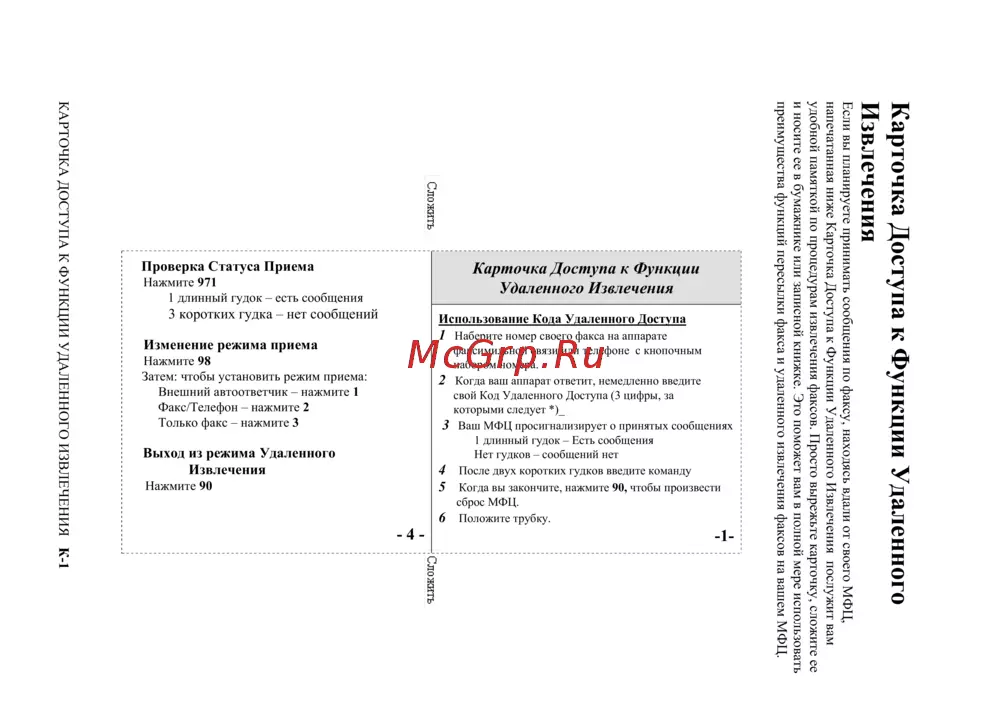 удобной памяткой по процедурам извлечения факсов. Просто вырежьте карточку, сложите ее