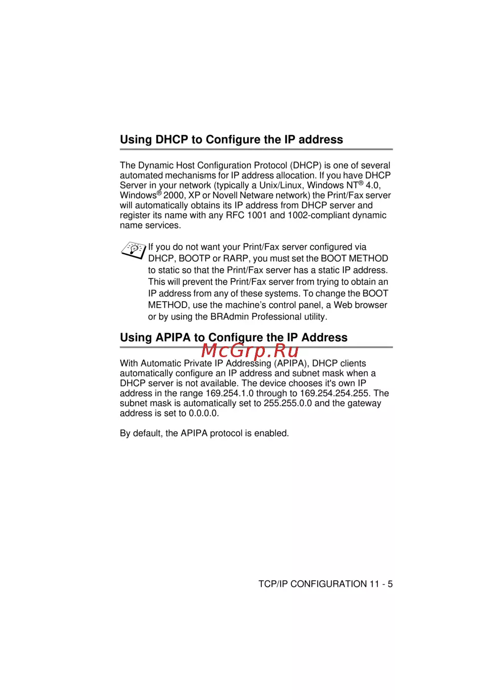 Brother MFC-8420D [116/163] Using dhcp to configure the ip address