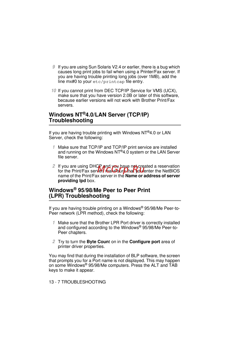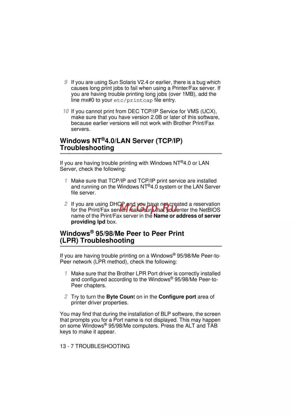Brother MFC-8420D [139/163] Windows nt 4 lan server tcp ip troubleshooting