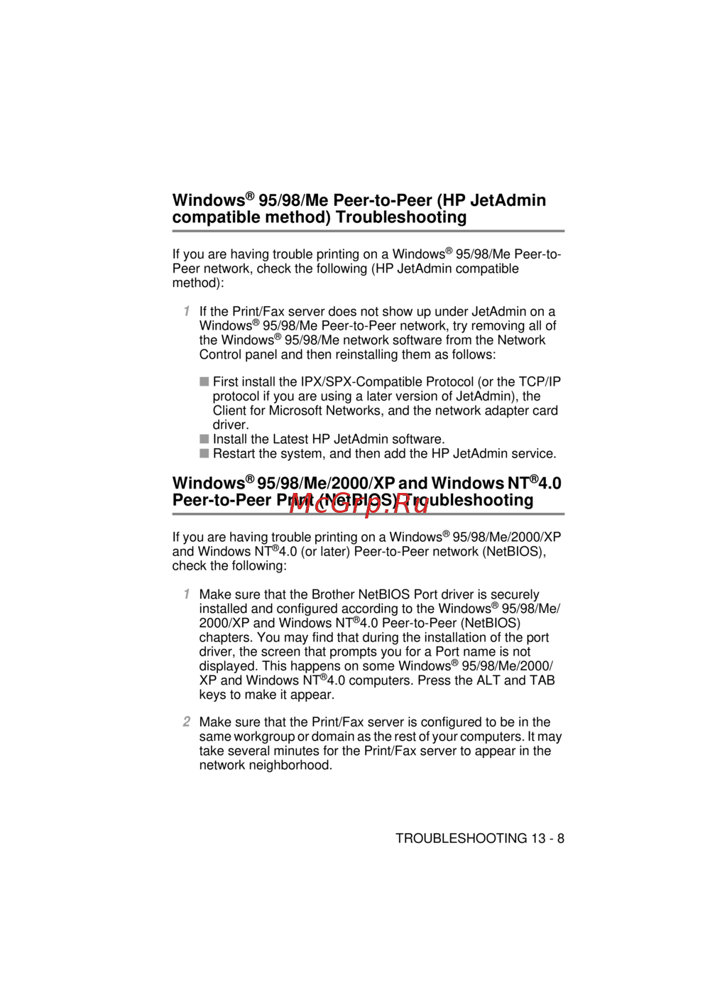 - 98 me peer to peer hp jetadmin compatible method troubleshooting p.140