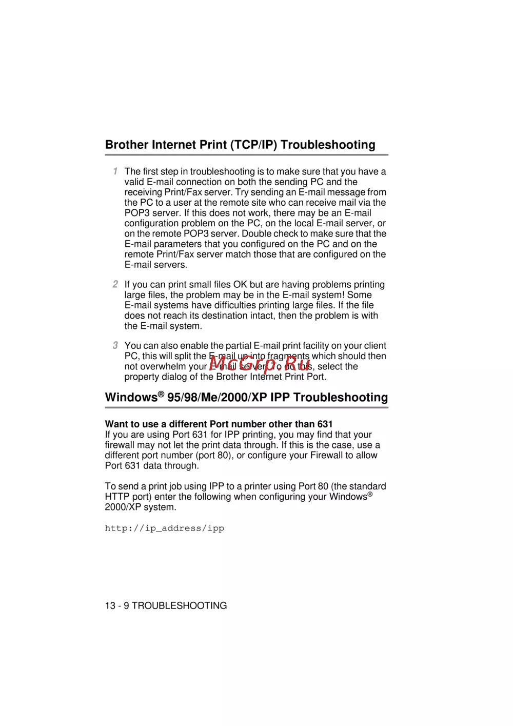 Brother MFC-8420D — troubleshooting Email and IPP Printing Issues [141/163]