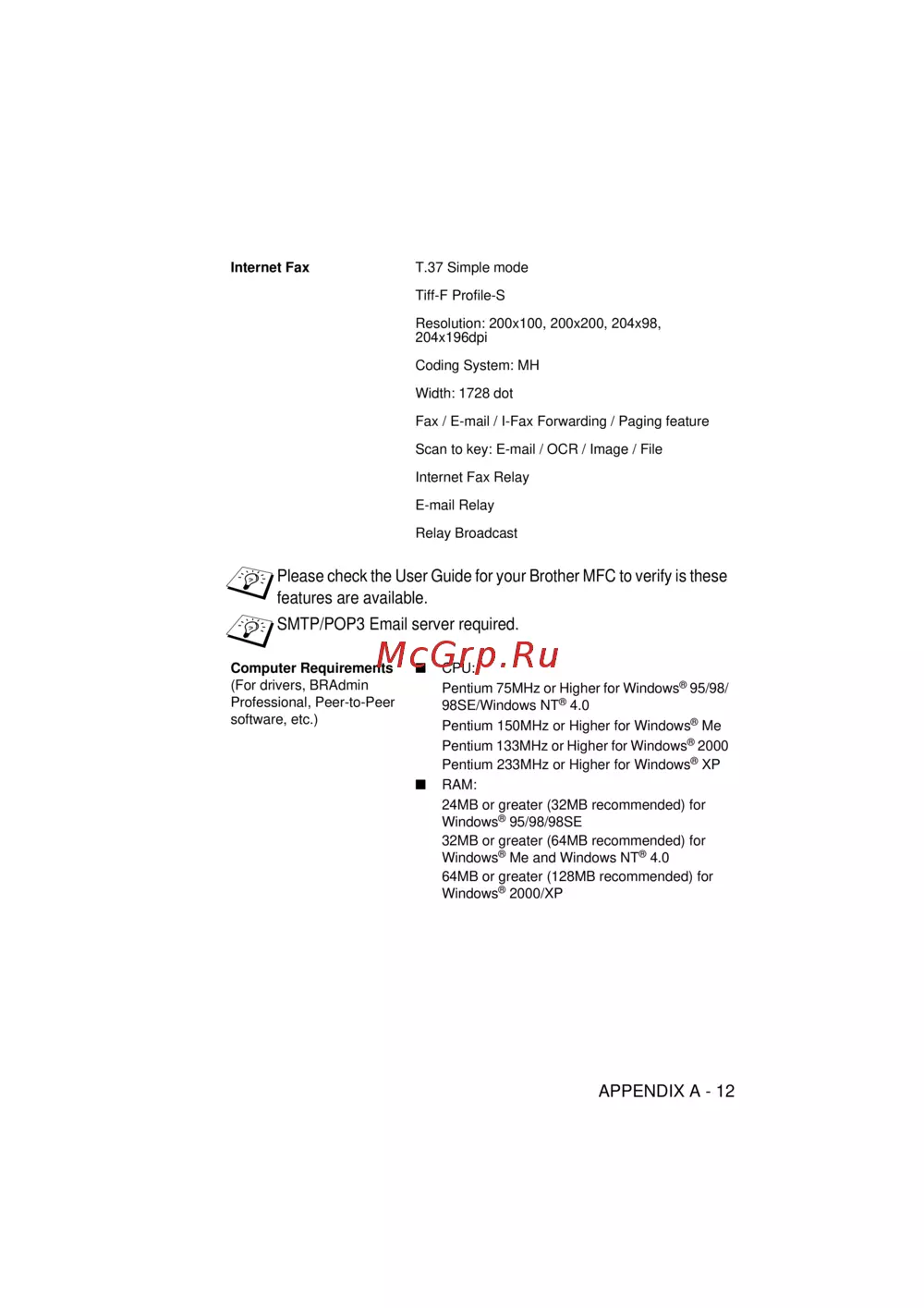 Brother MFC-8420D [158/163] Smtp pop3 email server required