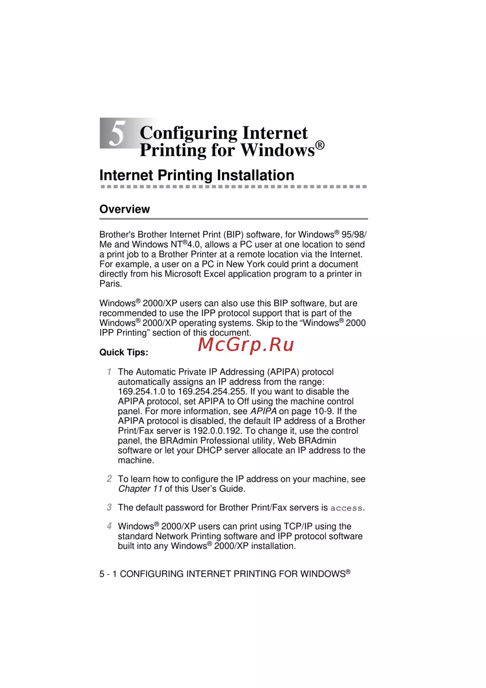 5 - 1 CONFIGURING INTERNET PRINTING FOR WINDOWS