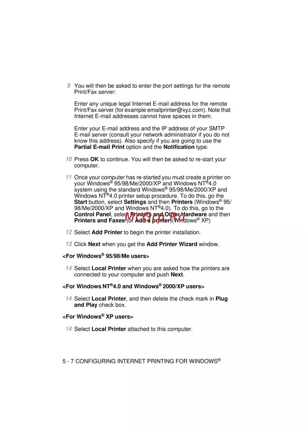 5 - 7 CONFIGURING INTERNET PRINTING FOR WINDOWS