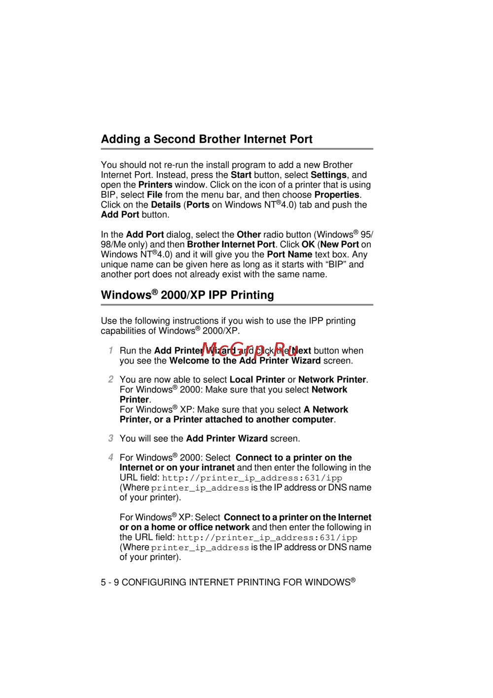 5 - 9 CONFIGURING INTERNET PRINTING FOR WINDOWS