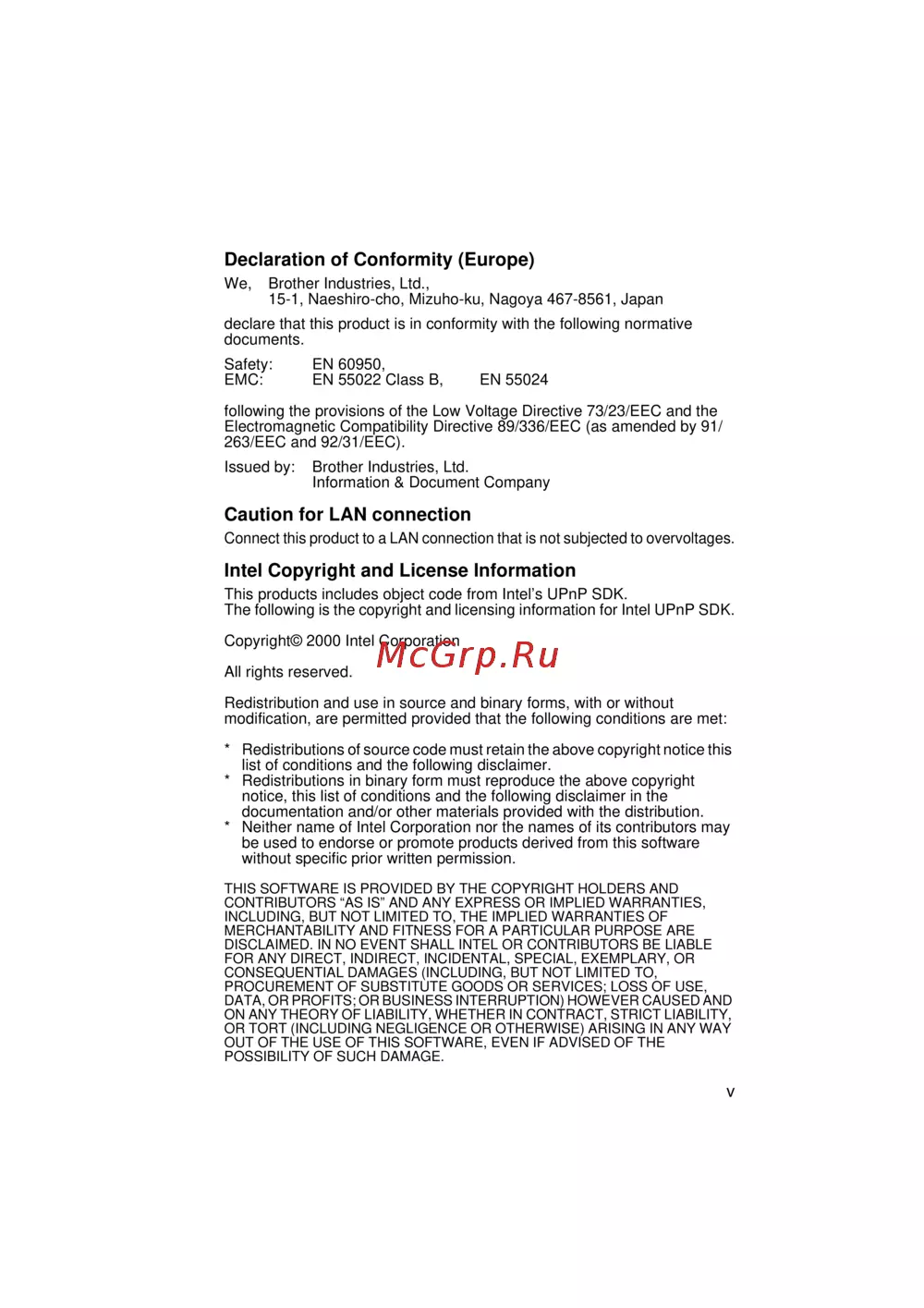 Brother MFC-8420D [6/163] Declaration of conformity europe