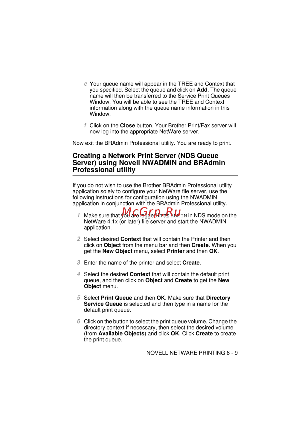 ![Brother MFC-8420D [66/163] Creating a network print server nds queue server using novell nwadmin and bradmin professional utility](/views2/1469318/page66/bg42.png)