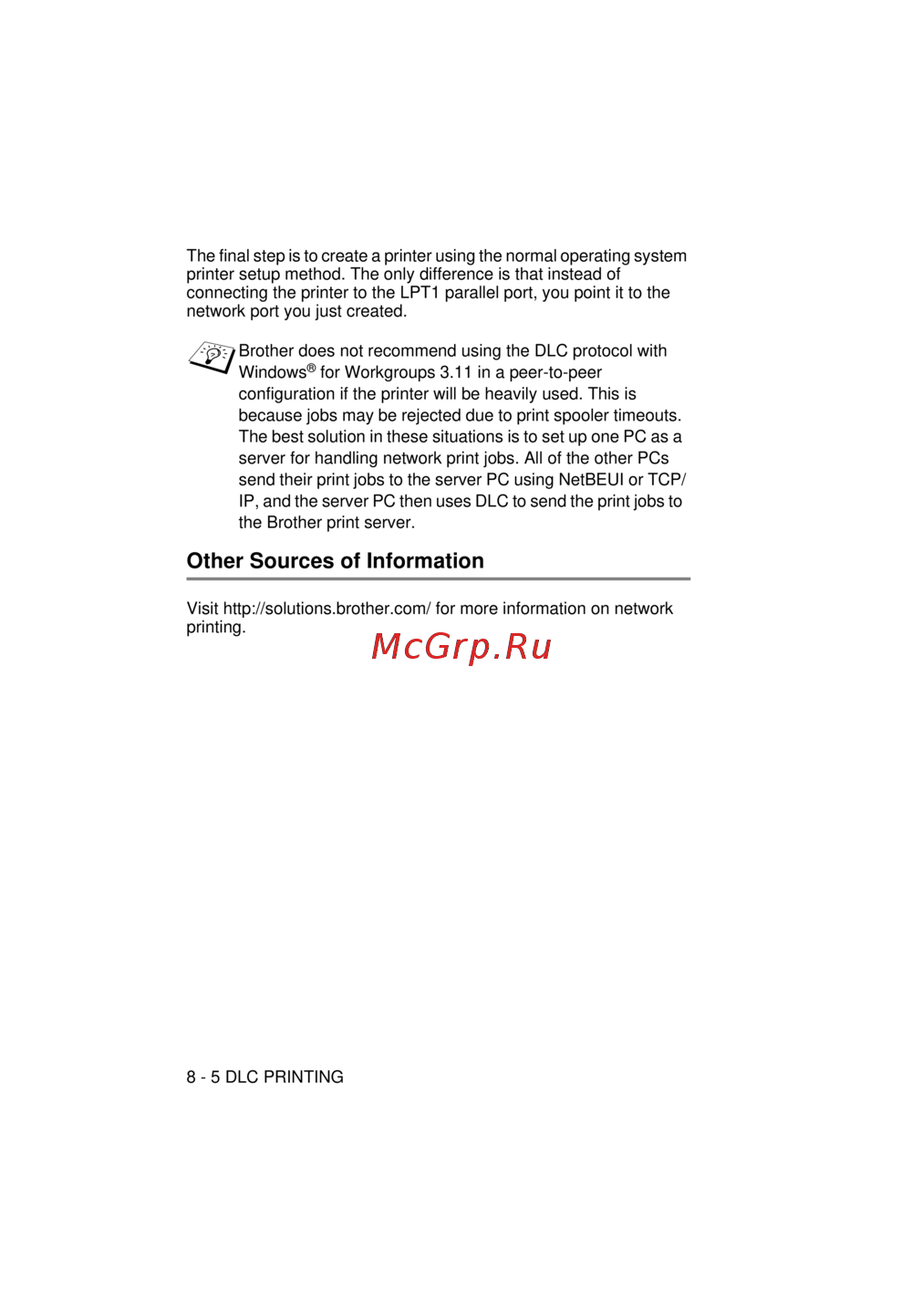 Brother does not recommend using the DLC protocol with