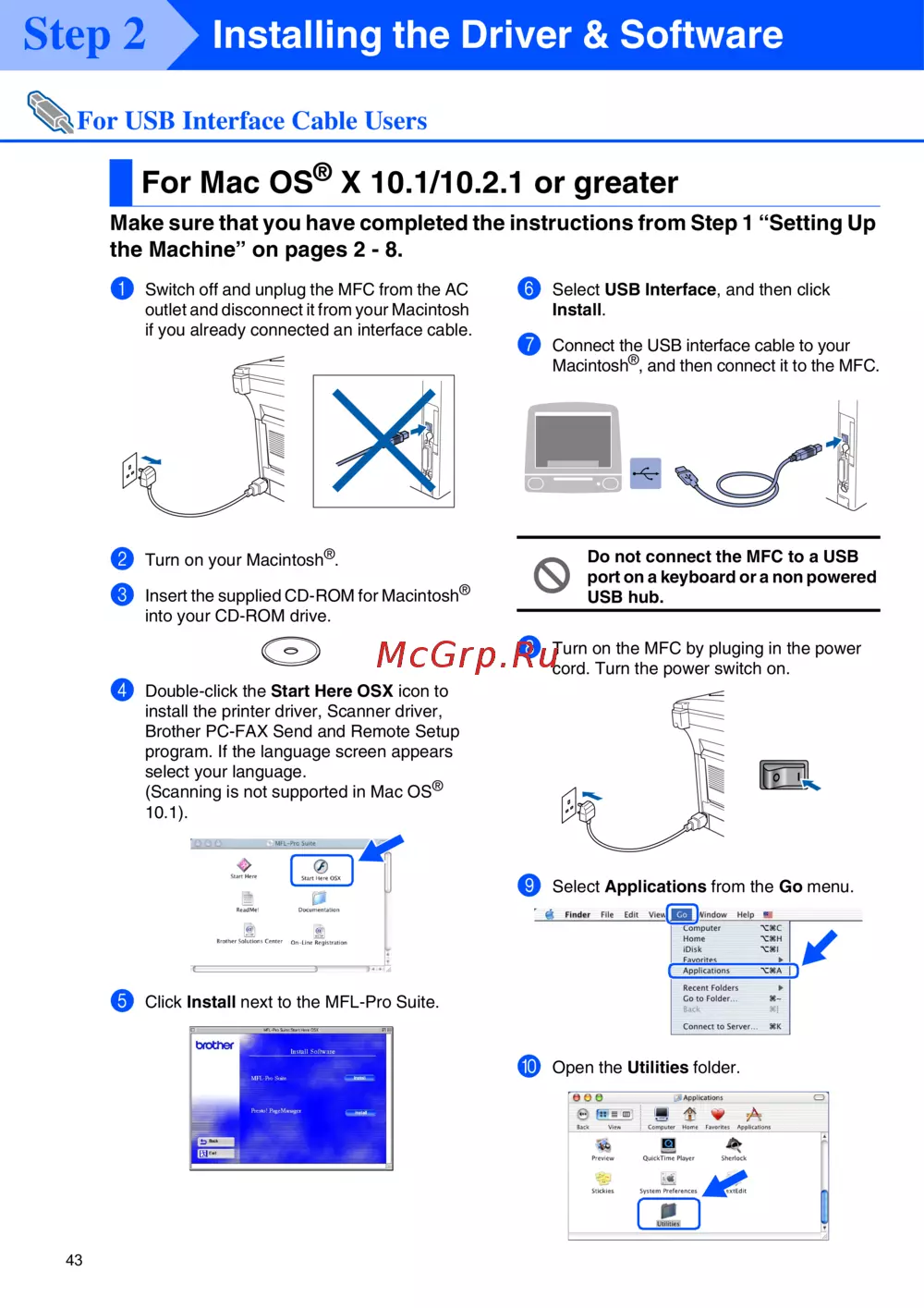 Do not connect the MFC to a USB
