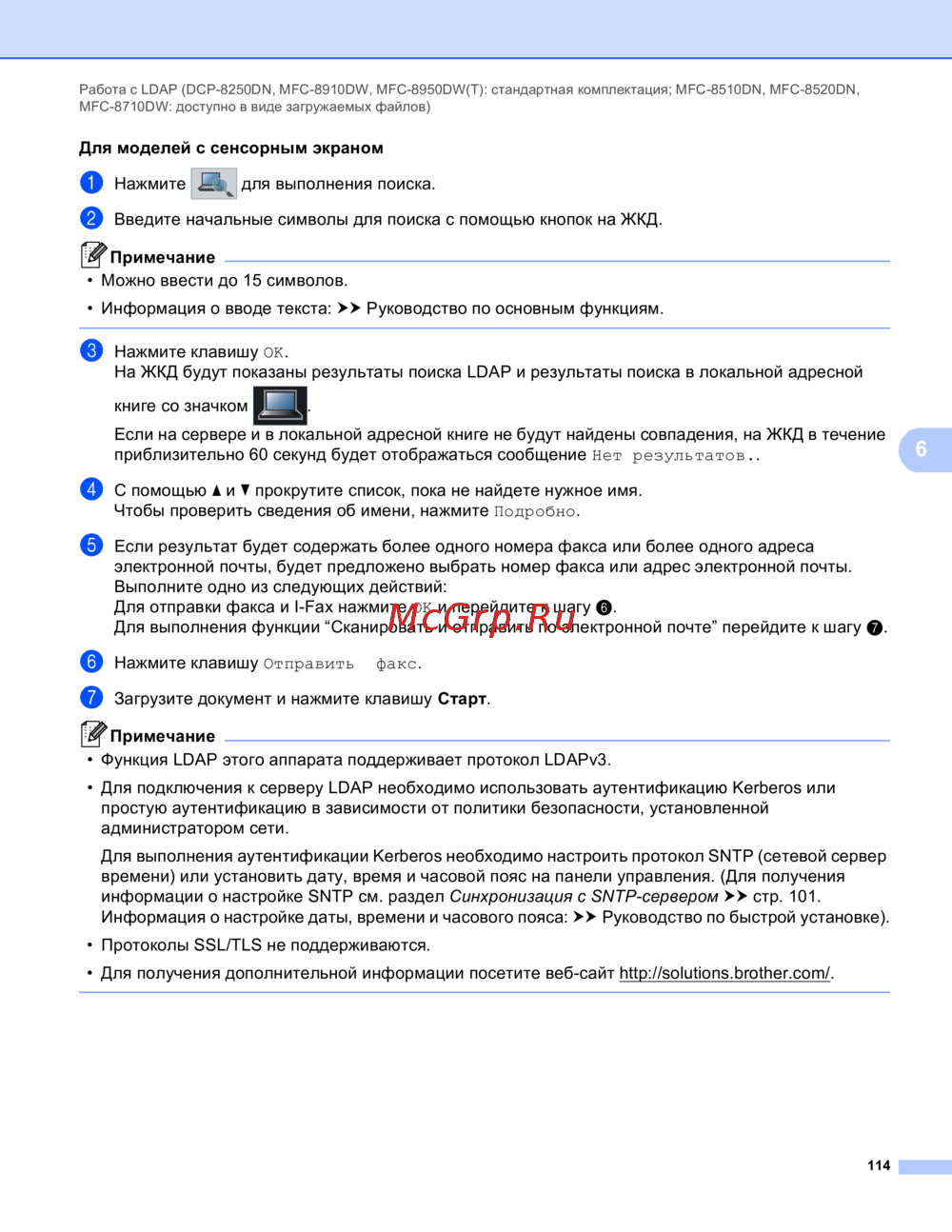 Работа с LDAP (DCP-8250DN, MFC-8910DW, MFC-8950DW(T): стандартная комплектация; MFC-8510DN, MFC-8520DN,