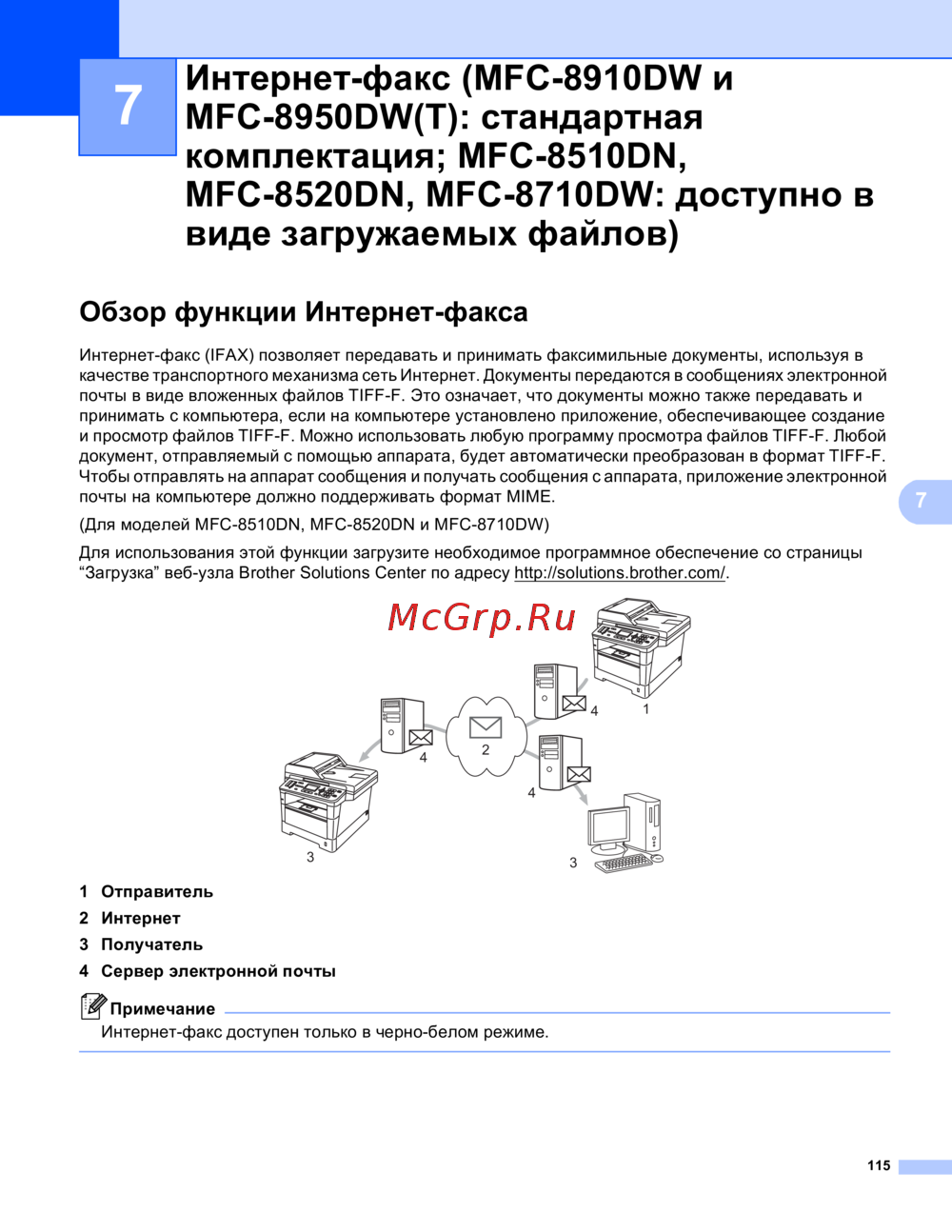 - Интернет факс mfc 8910dw и mfc 8950dw t стандартная комплектация mfc 8510dn mfc 8520dn mfc 8710dw доступно в виде загружаемых файлов 115 p.5