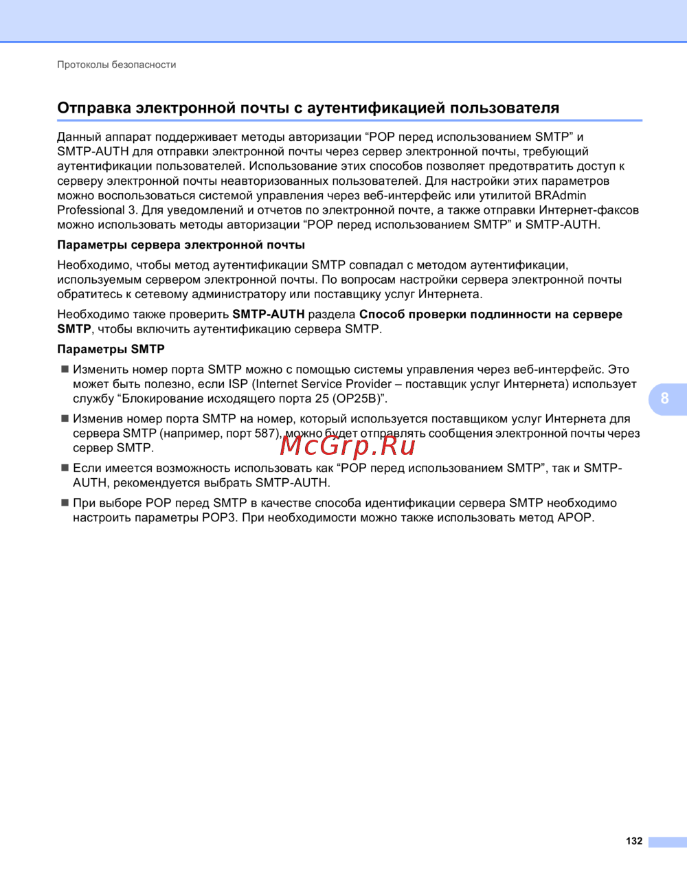 Brother MFC-8510DN — настройка аутентификации электронной почты и SMTP-параметров [139/192]