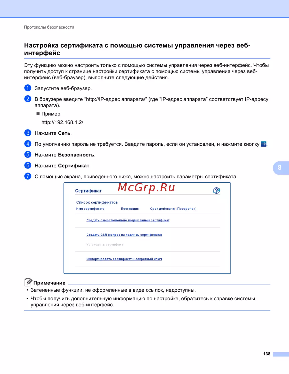 Brother MFC-8510DN — настройка сертификата через веб-интерфейс: пошаговое руководство [145/192]
