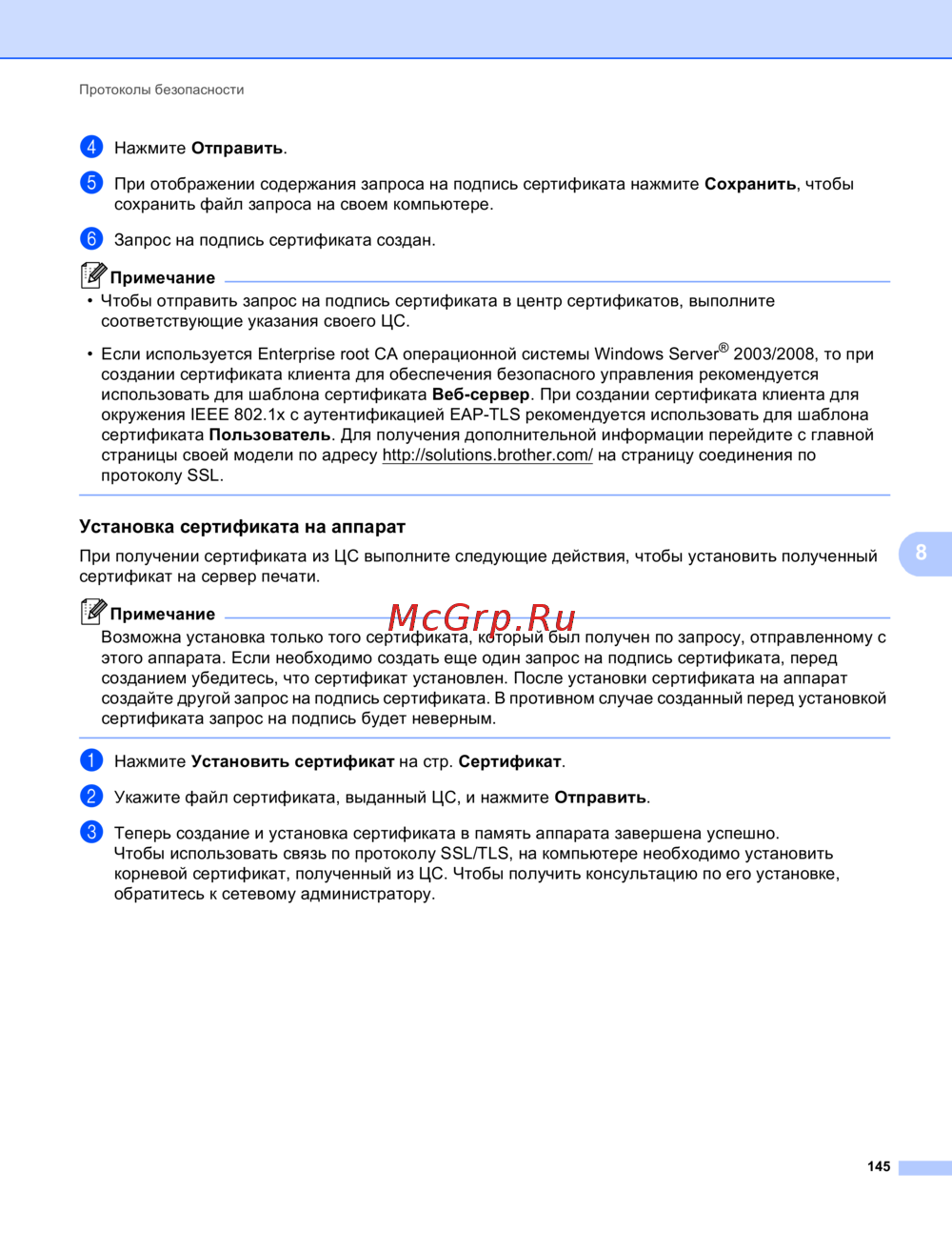 Brother MFC-8510DN — инструкции по созданию и установке сертификатов безопасности [152/192]
