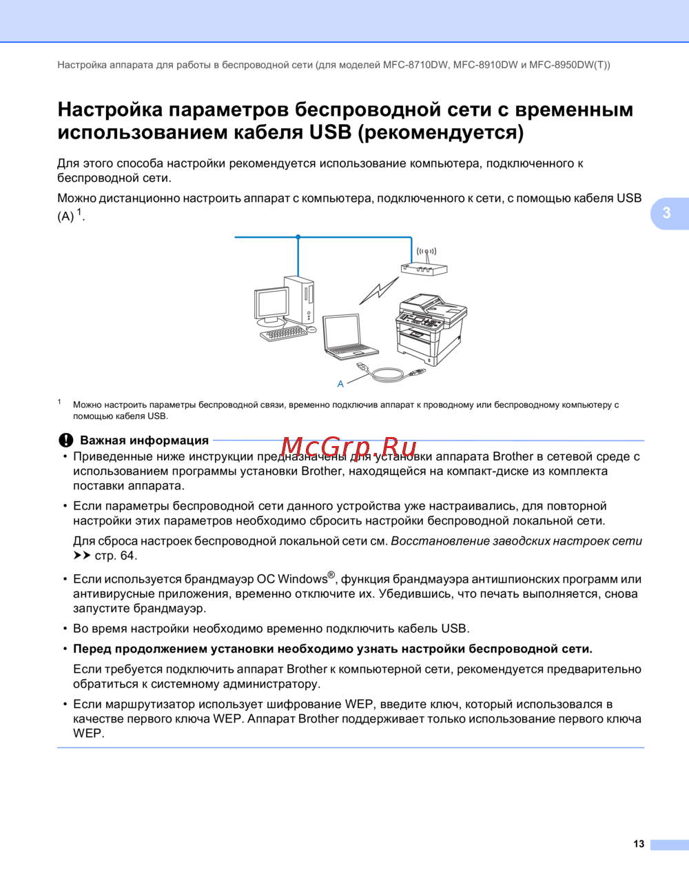 - Настройка аппарата для работы в беспроводной сети для моделей mfc 8710dw mfc 8910dw и mfc 8950dw t 10 p.3