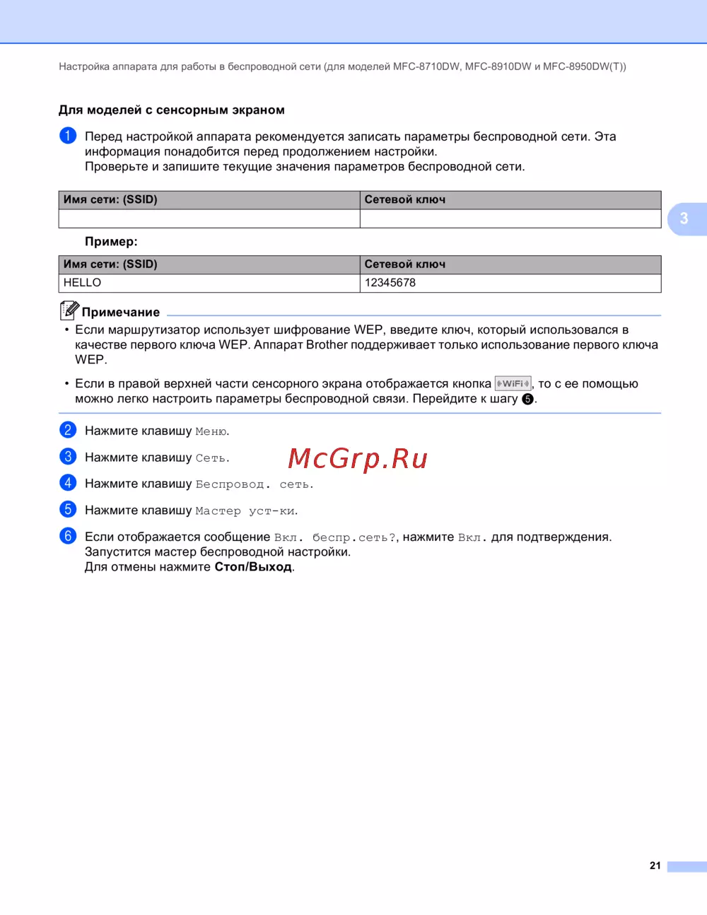 - Настройка аппарата для работы в беспроводной сети для моделей mfc 8710dw mfc 8910dw и mfc 8950dw t 10 p.3