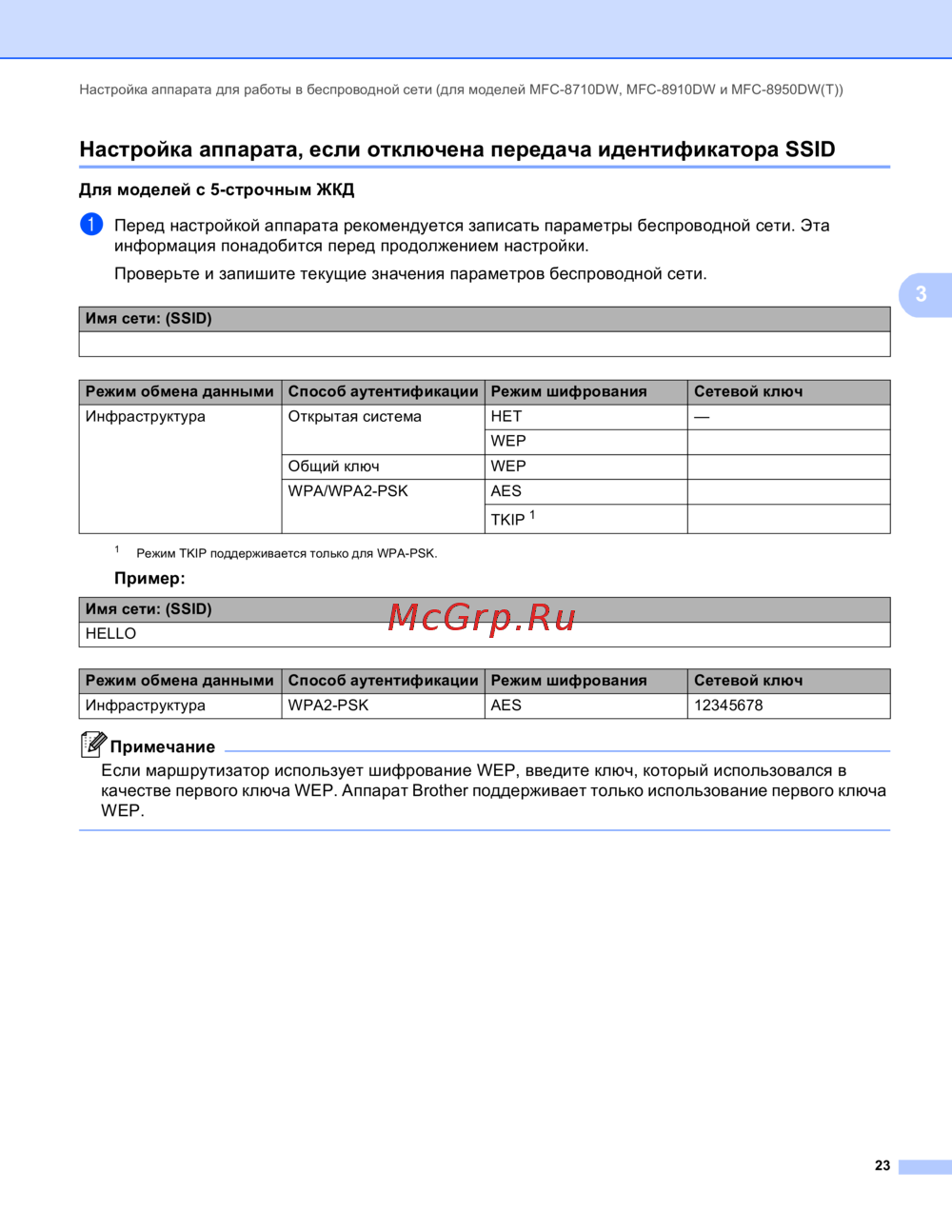 - Настройка аппарата для работы в беспроводной сети для моделей mfc 8710dw mfc 8910dw и mfc 8950dw t 10 p.3