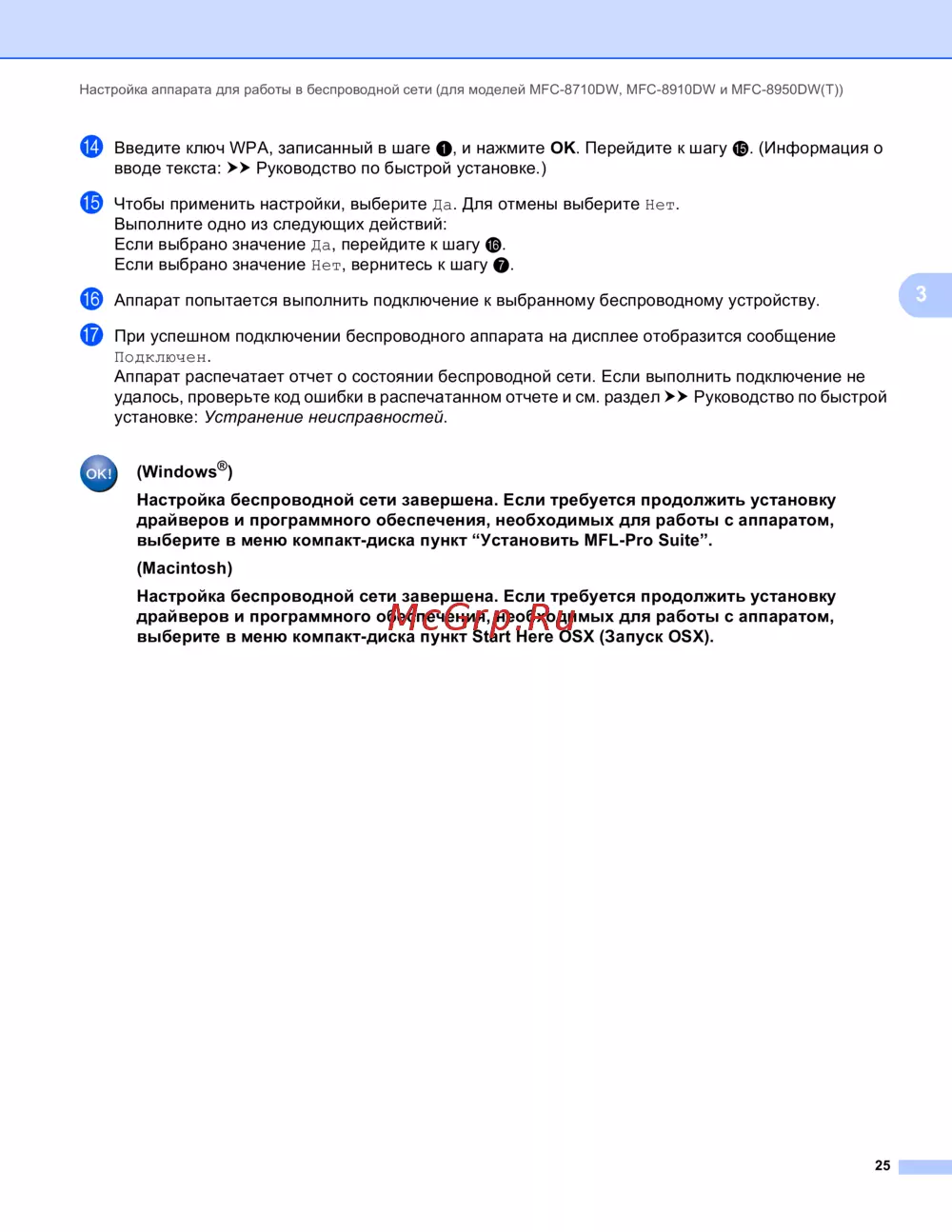 - Настройка аппарата для работы в беспроводной сети для моделей mfc 8710dw mfc 8910dw и mfc 8950dw t p.17