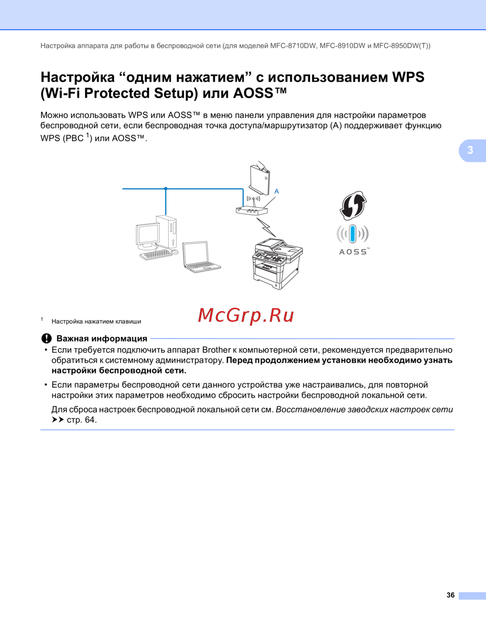 - Настройка аппарата для работы в беспроводной сети для моделей mfc 8710dw mfc 8910dw и mfc 8950dw t 10 p.3