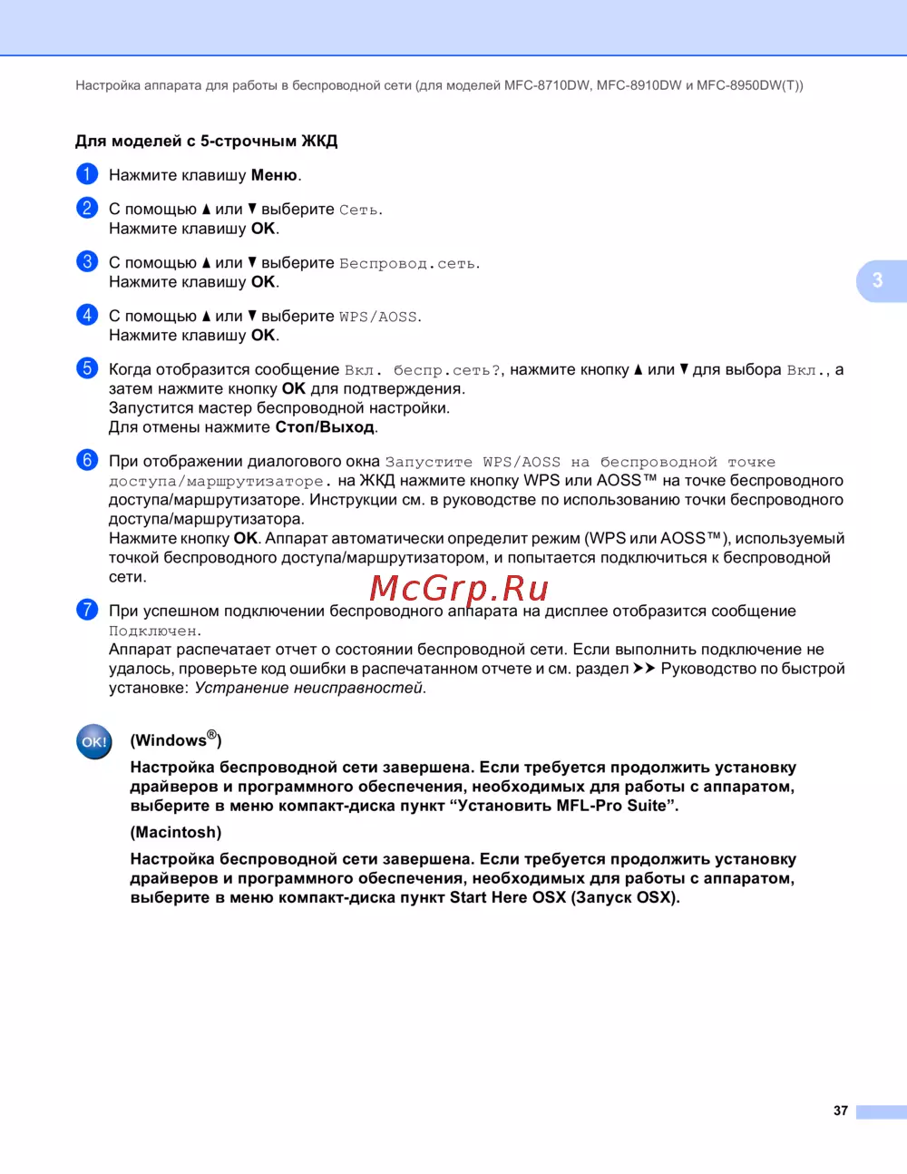 - Настройка аппарата для работы в беспроводной сети для моделей mfc 8710dw mfc 8910dw и mfc 8950dw t 10 p.3