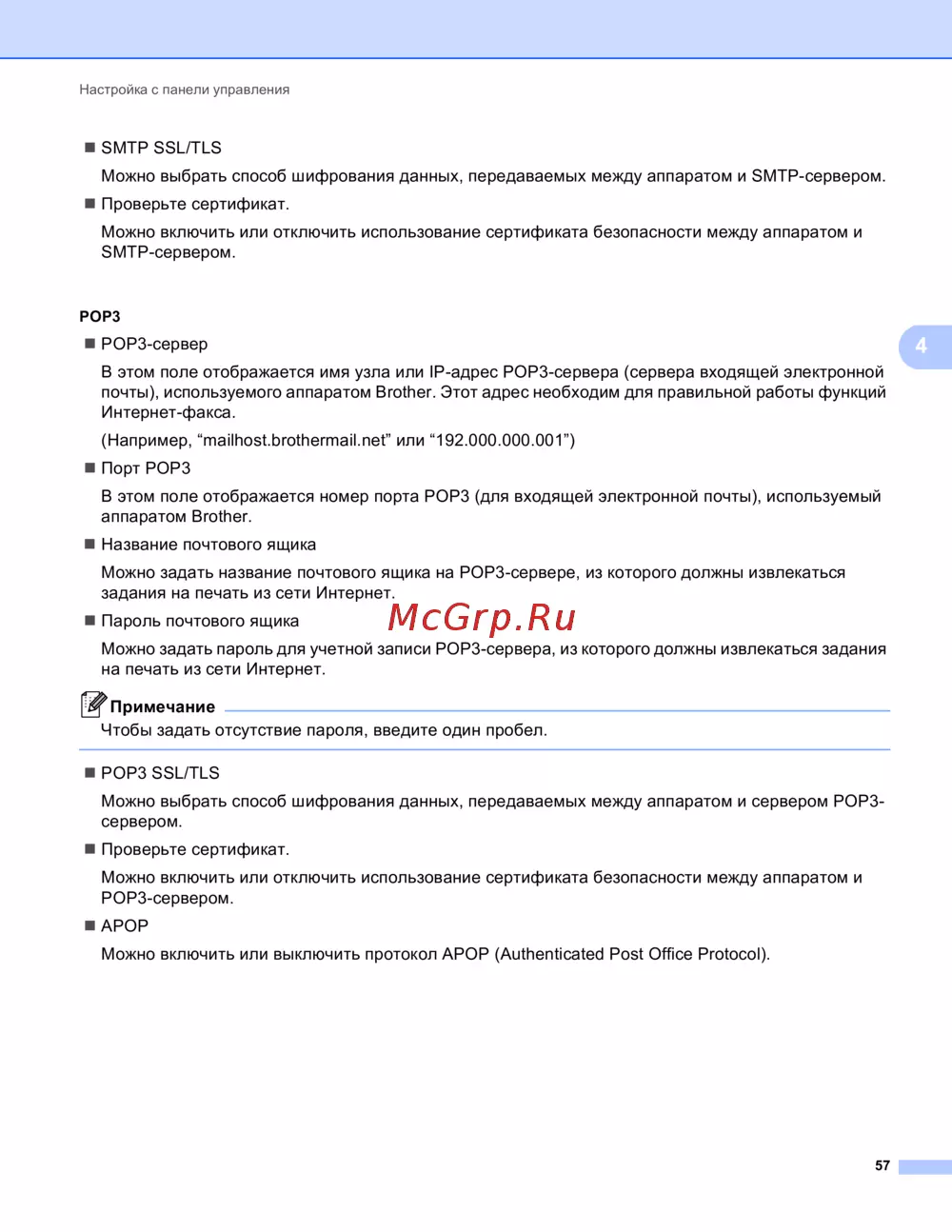 Brother MFC-8510DN — настройка SMTP и POP3 для безопасной передачи данных [64/192]