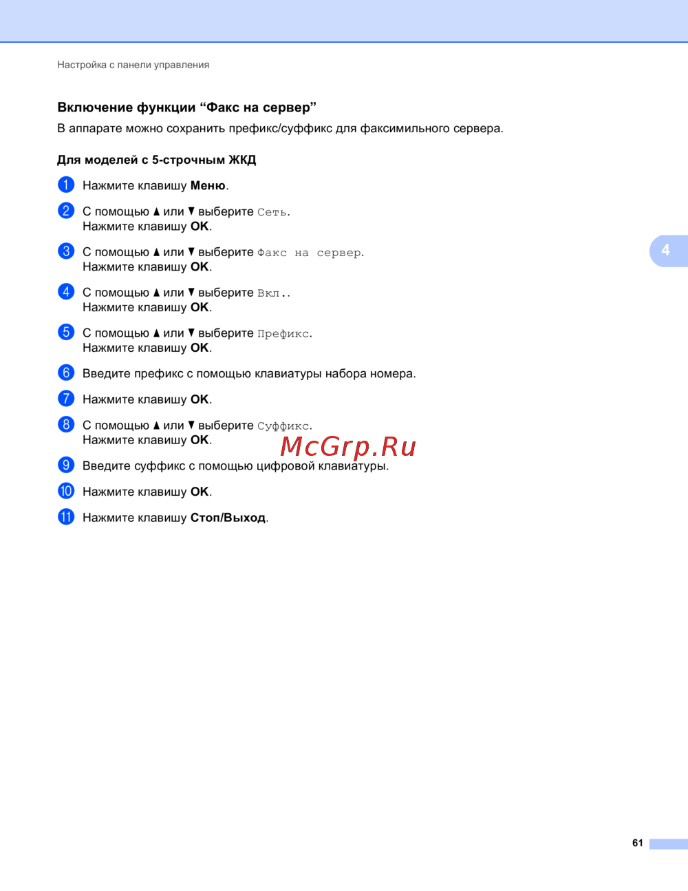 Brother MFC-8510DN [68/192] Включение функции факс на сервер