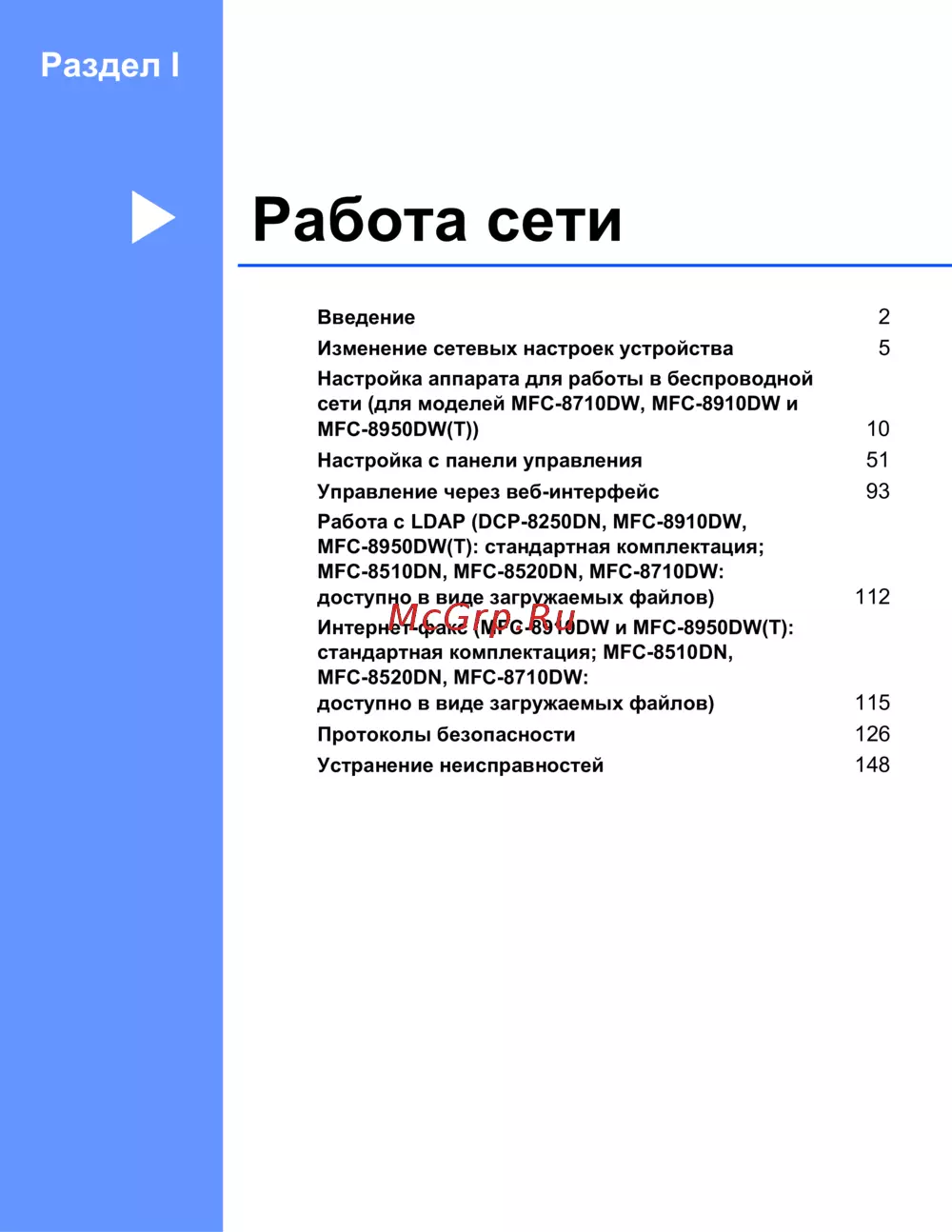 - Работа с ldap dcp 8250dn mfc 8910dw mfc 8950dw t стандартная комплектация mfc 8510dn mfc 8520dn mfc 8710dw доступно в виде загружаемых файлов 112 p.5