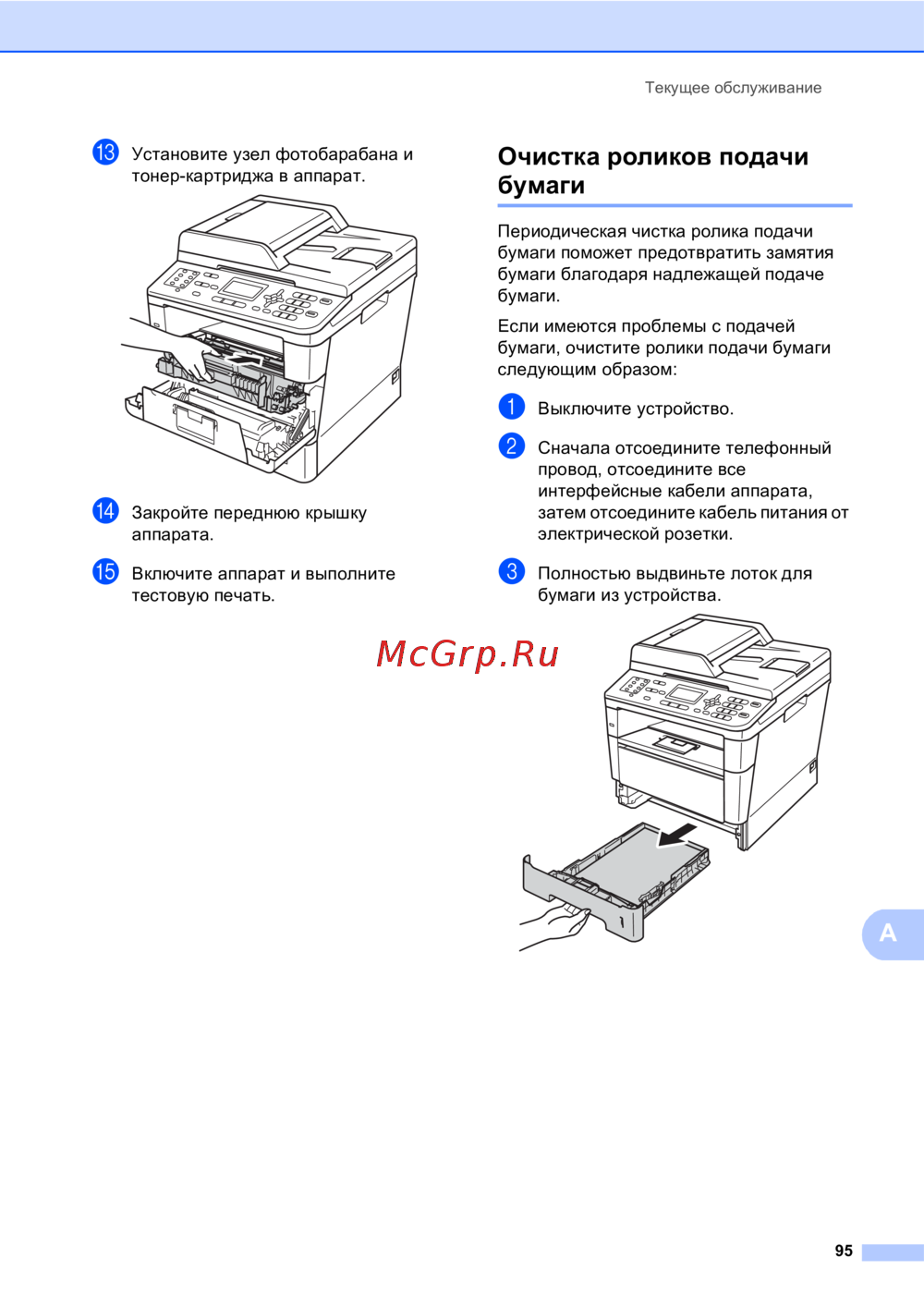 Узнайте, как правильно установить фотобарабан и тонер-картридж, а также очистить ролики подачи бумаги для предотвращения замятия. Подробные шаги и советы.