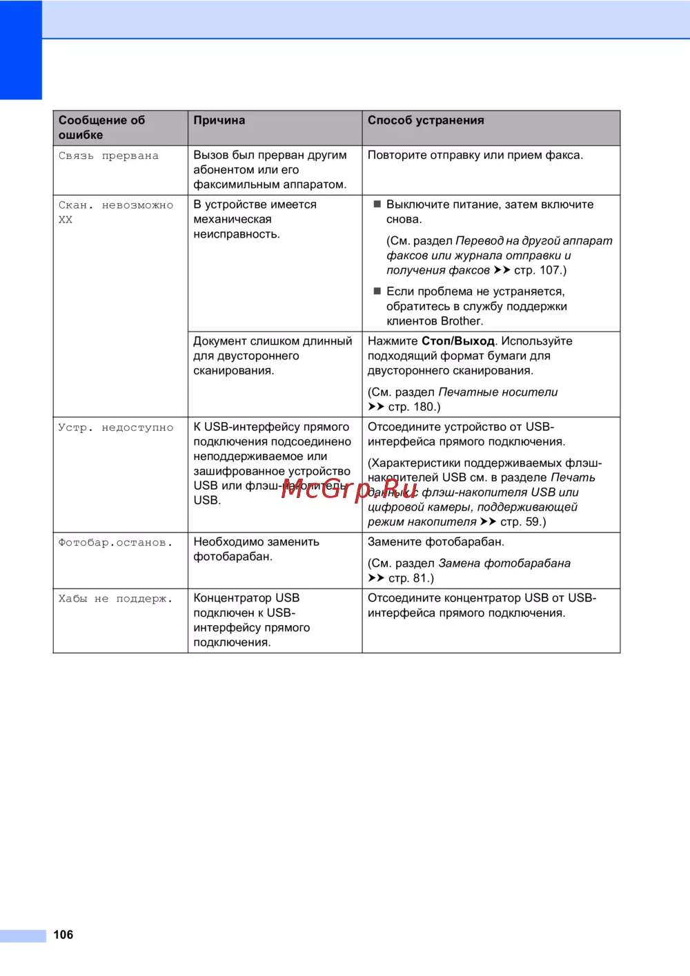 Brother MFC-8510DN — устранение ошибок и неисправностей в сканерах и факсах [116/206]