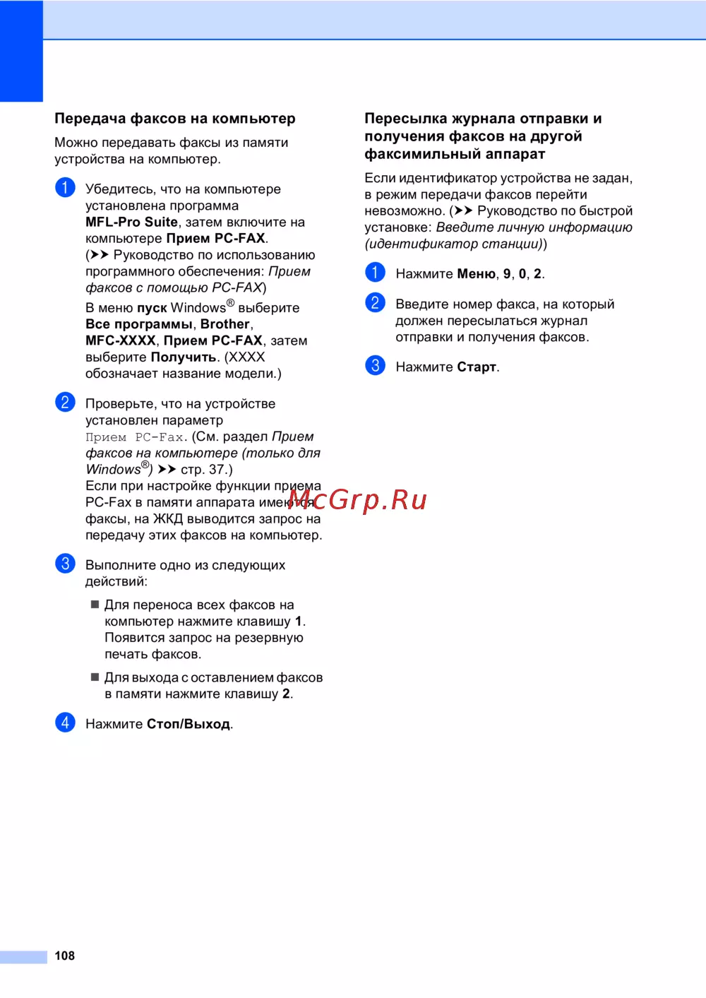 Brother MFC-8510DN — как передавать факсы на компьютер: пошаговая инструкция [118/206]