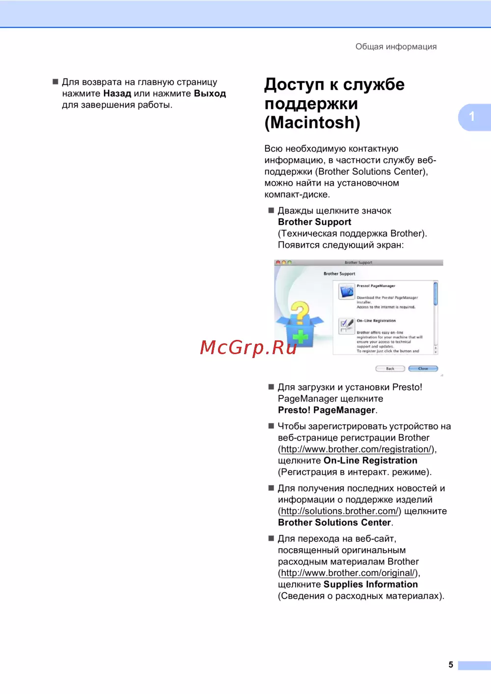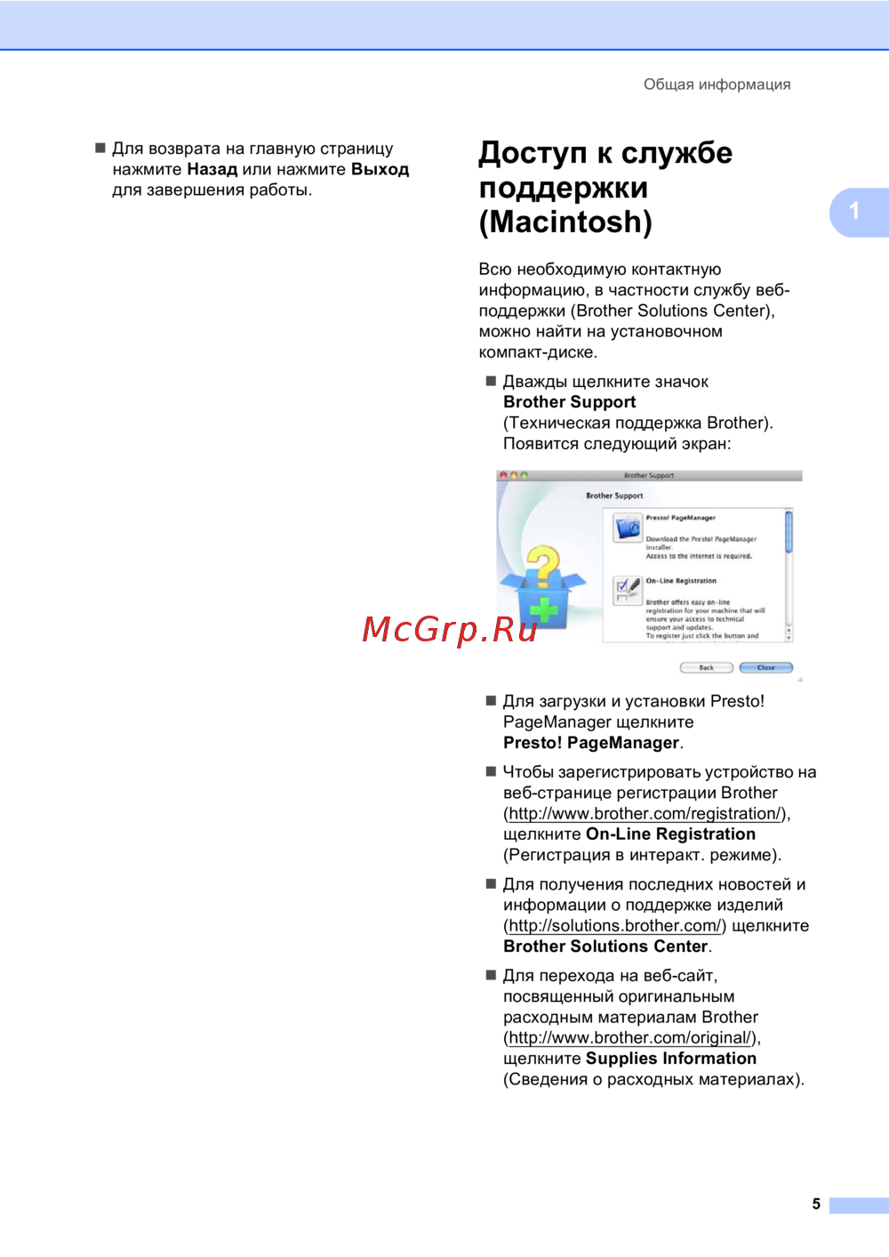 Brother MFC-8510DN — информация о поддержке и регистрации устройств [15/206]